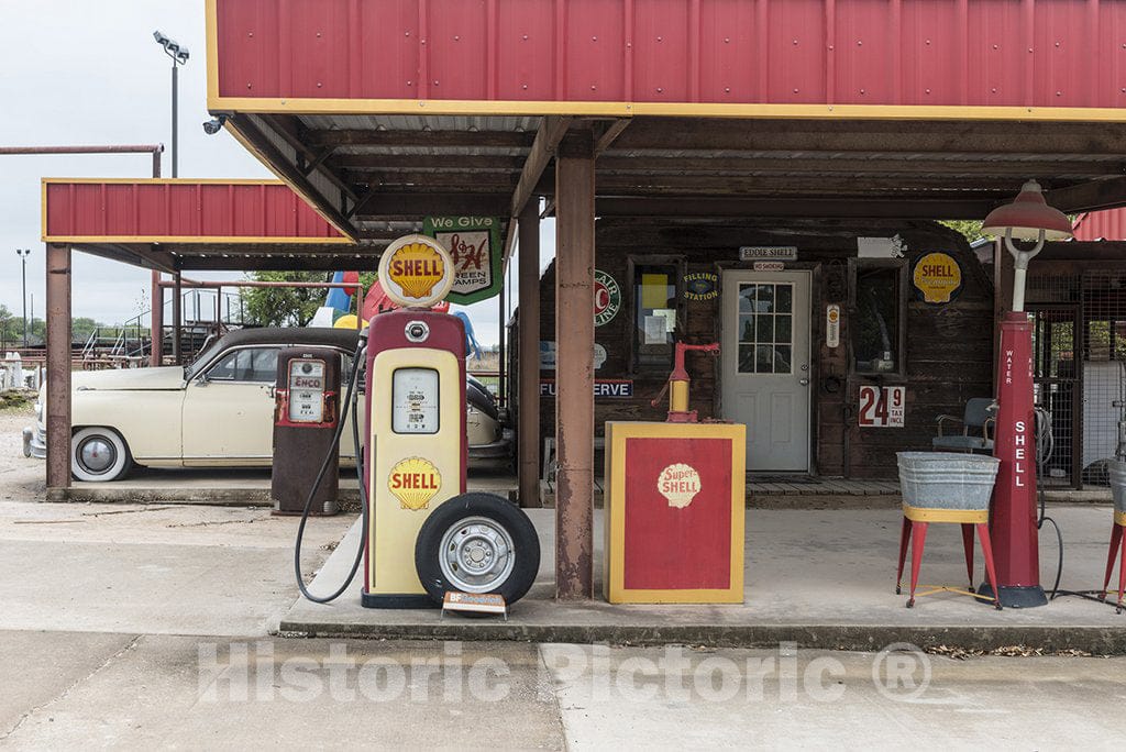 Marble Falls, TX Photo - A re-Created Shell Gasoline Station at The Pottery Ranch Pottery Store in Marble Falls, Texas