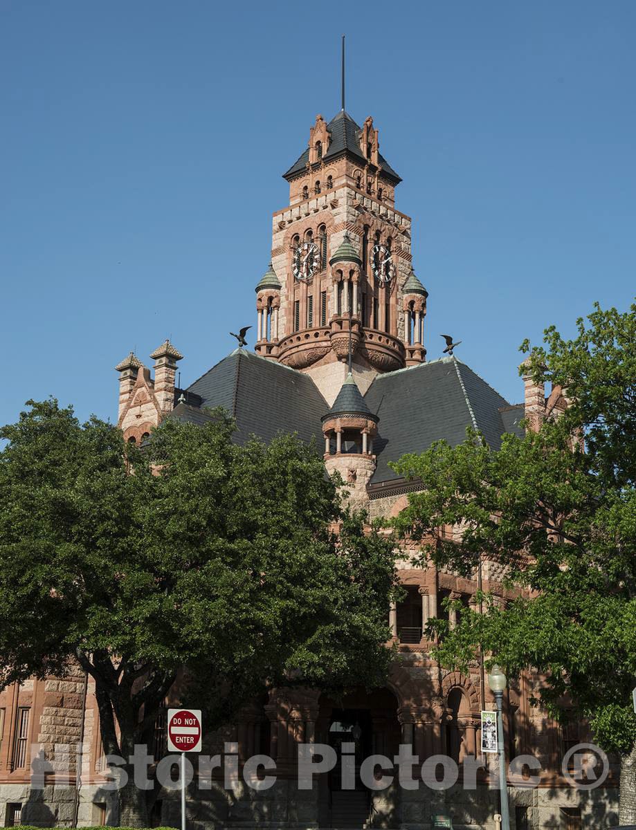 Designed by architect J. Riely Gordon, the elaborate, Richardsonian Romanesque courthouse is considered by many to be among the most beautiful of Texas's older courthouses. | Credit line: The Lyda Hill Texas Collection of Photographs in Carol M. Highsmith's America Project, Library of Congress, Prints and Photographs Division.|Gift; The Lyda Hill Foundation; 2014; (DLC/PP-2014:054).|Forms part of: Lyda Hill Texas Collection of Photographs in Carol M. Highsmith's America Project in the Carol M. Highsmith Archive.