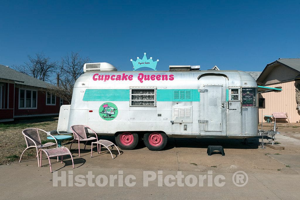 Photo - The Cupcake Queens Bakery Wagon (in an Old Airstream House Trailer) in Albany, Texas, seat of Shackelford County - Fine Art Photo Reproduction
