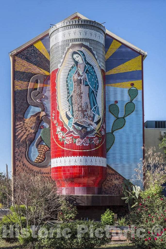 Photo - Mosaic in half-relief, depicting the Virgin Mary at the Guadalupe Cultural Arts Center in San Antonio, Texas - Fine Art Photo Reproduction
