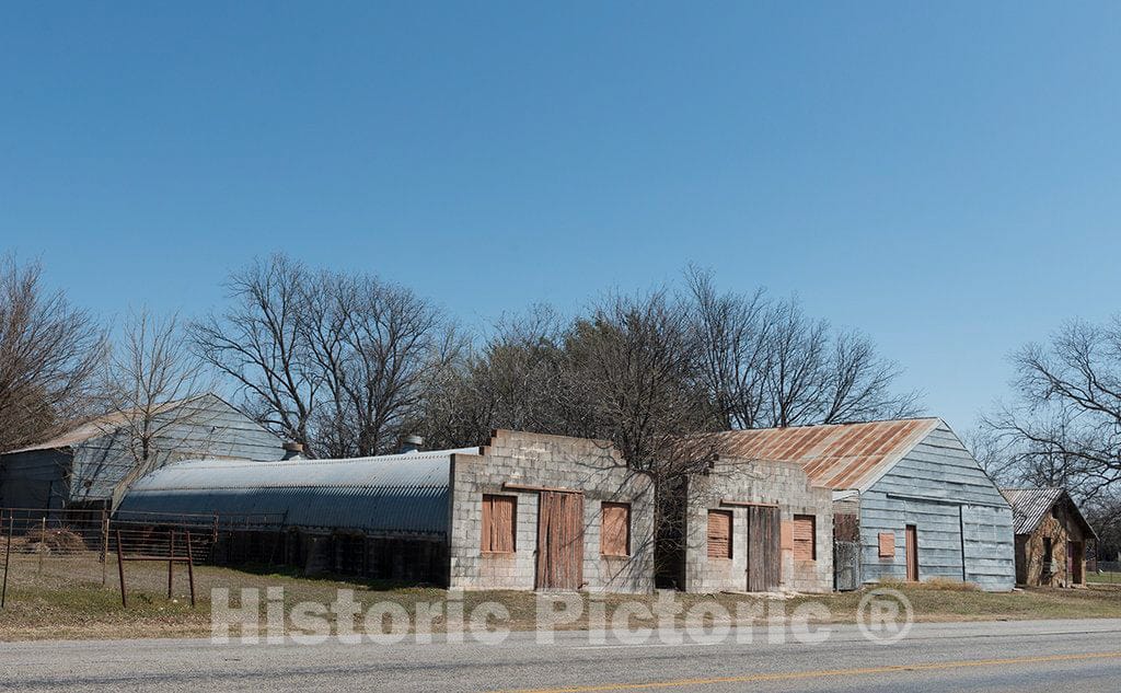 Photo - Old Roadside Buildings, Including a Partial quonset Structure, in Zephyr, an unincorporated Town in Brown County, Texas - Fine Art Photo Reproduction