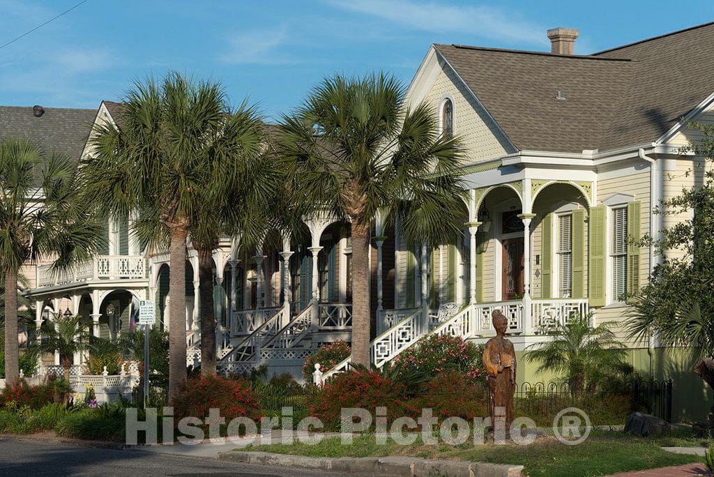 In one sense, this is a photograph of a lovely row of houses in Galveston, Texas. But look closely in the figure in the foreground. In 2008, ferocious Hurricane Ike and its surge of high salt water killed an estimated 40,000 trees. But Galveston Island Tree Conservancy member Donna Leibbert found chain saw sculptors to create art from the dead trees in the historic district. This is one of them | Credit line: The Lyda Hill Texas Collection of Photographs in Carol M. Highsmith's America Project, Library of Congress, Prints and Photographs Division.|Gift; The Lyda Hill Foundation; 2014; (DLC/PP-2014:054).|Forms part of: Lyda Hill Texas Collection of Photographs in Carol M. Highsmith's America Project in the Carol M. Highsmith Archive.