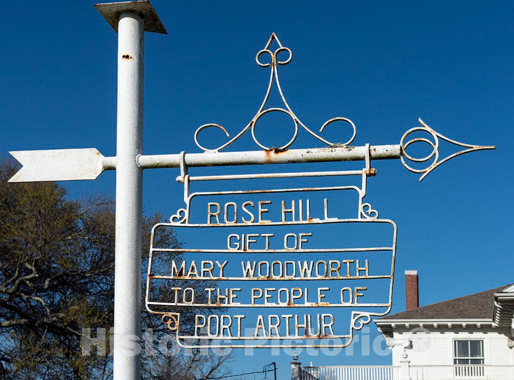 • .Photo - Sign on The Lawn of Rose Hill Manor, Also Called The Woodworth House, in Port Arthur, Texas- Fine Art Photo Reporduction