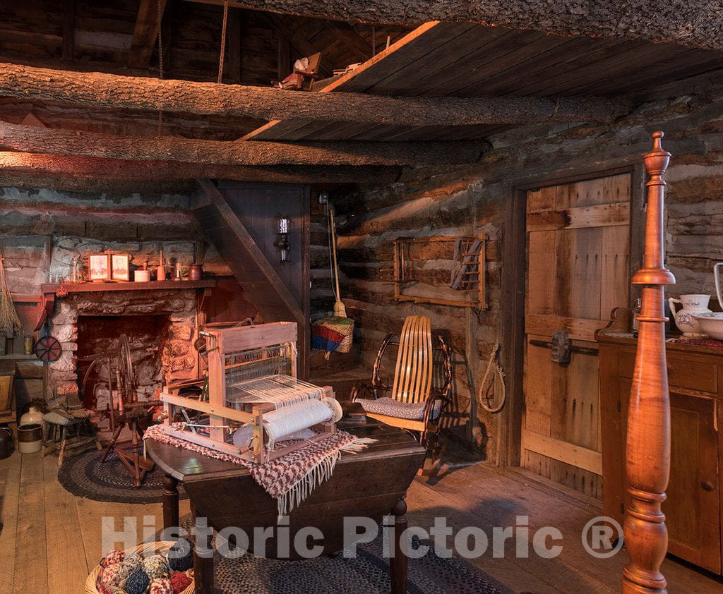 Photo - View inside the Pickard Cabin at Log Cabin Village, a living-history museum complex in Fort Worth, Texas, owned and operated by the City of Fort Worth
