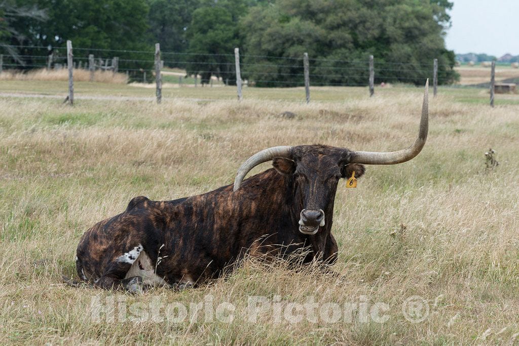 Photograph- an Unusual Longhorn Steer (Check The Cant of his Horns) Rests at The George Ranch Historical Park, a 20,000-acre Working Ranch in Fort Bend County, Texas, Featuring Historic Homes