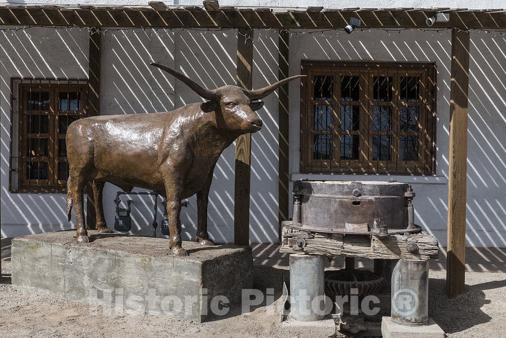 San Elizario, TX Photo - Longhorn Steer Wooden Sculpture in The Arts District of Little San Elizario, Near El Paso, Texas