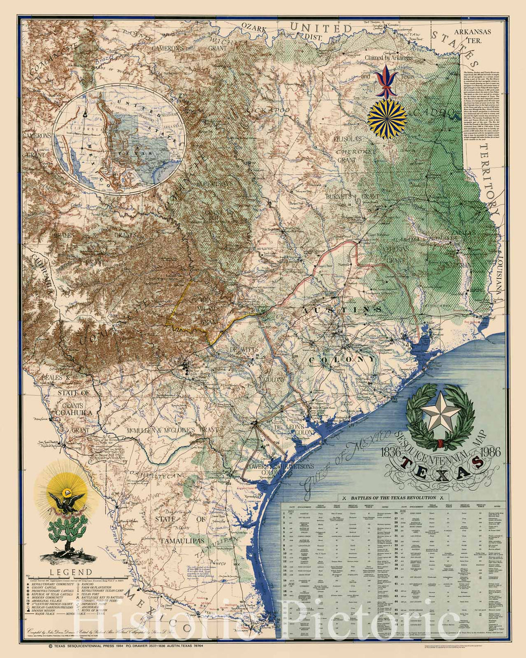 Map : Texas 1836 1984, Texas, 1836-1986, sesquicentennial map , Antique Vintage Reproduction