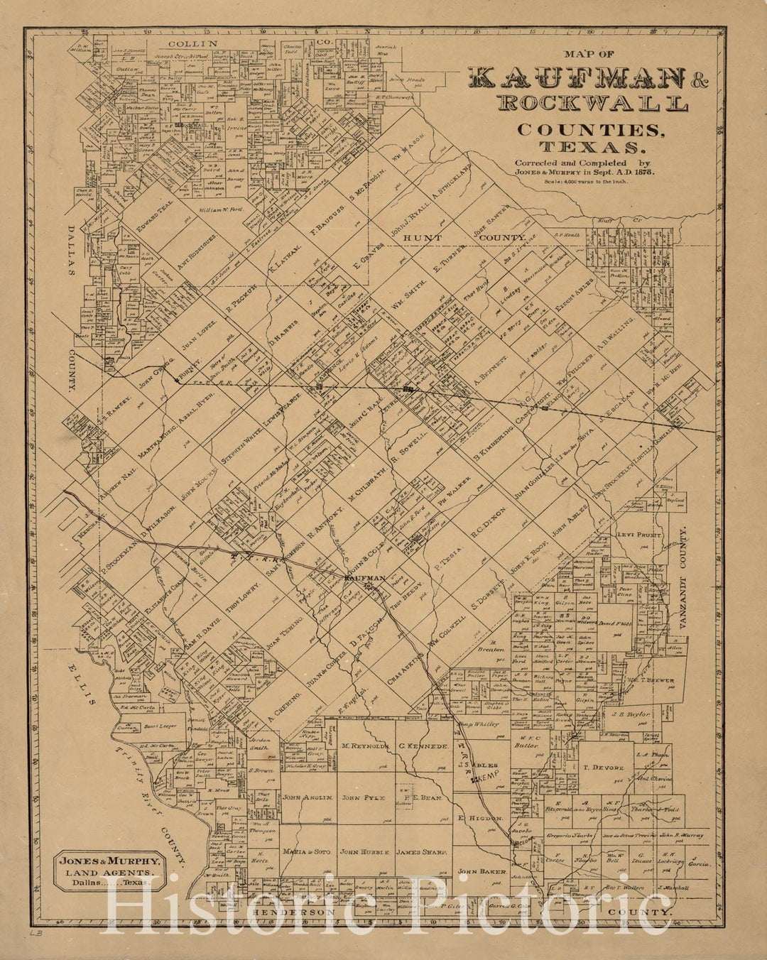 Historic 1878 Map - Map of Kaufman & Rockwall Counties,Texas