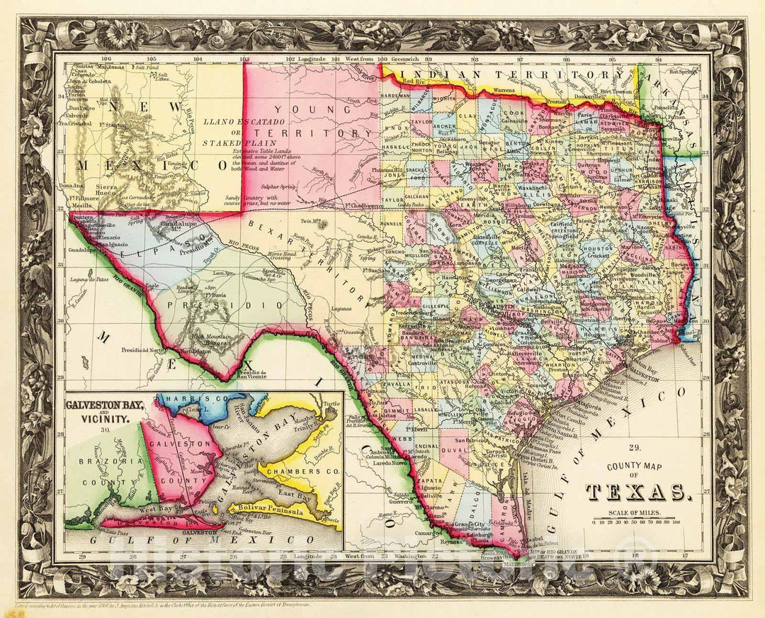 Historic Map : 1860 County Map Of Texas. - Vintage Wall Art
