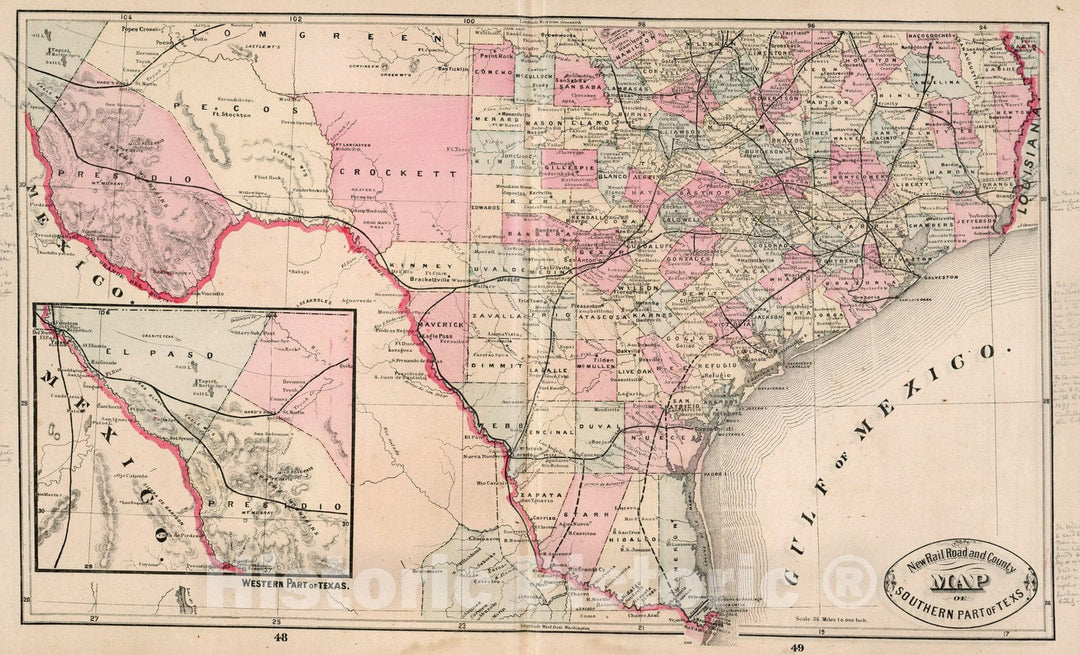 Historic Map : World Atlas Map, Southern Texas. 1882 - Vintage Wall Art