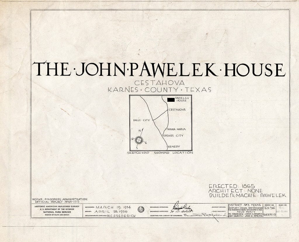 Blueprint HABS TEX,128-CESTA.V,1- (Sheet 0 of 3) - Machie Pawelek House, Texas 123 at Farm Road 887, Cestohowa, Karnes County, TX