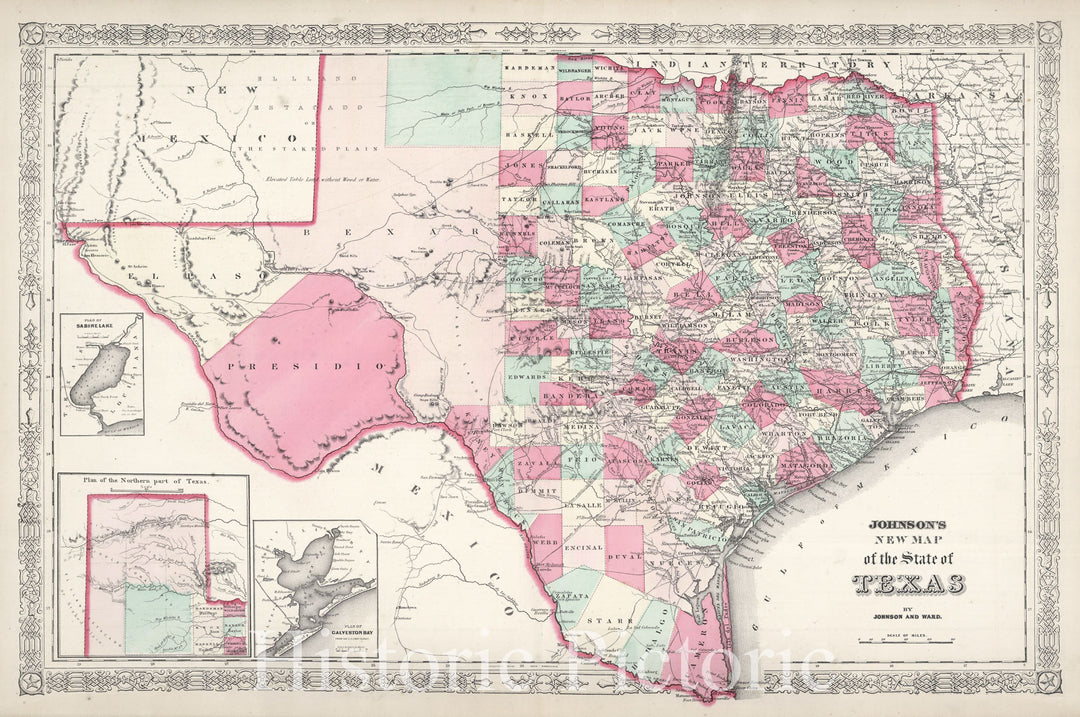 Historic Map : Johnson Map of Texas, Version 2, 1866, Vintage Wall Art