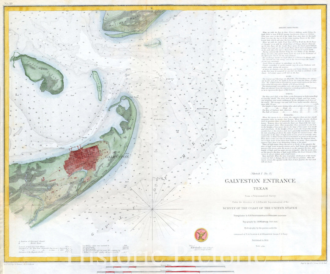 Historic Map : U.S.C.S. Map of Galveston City and Harbor, Texas , 1853, Vintage Wall Art