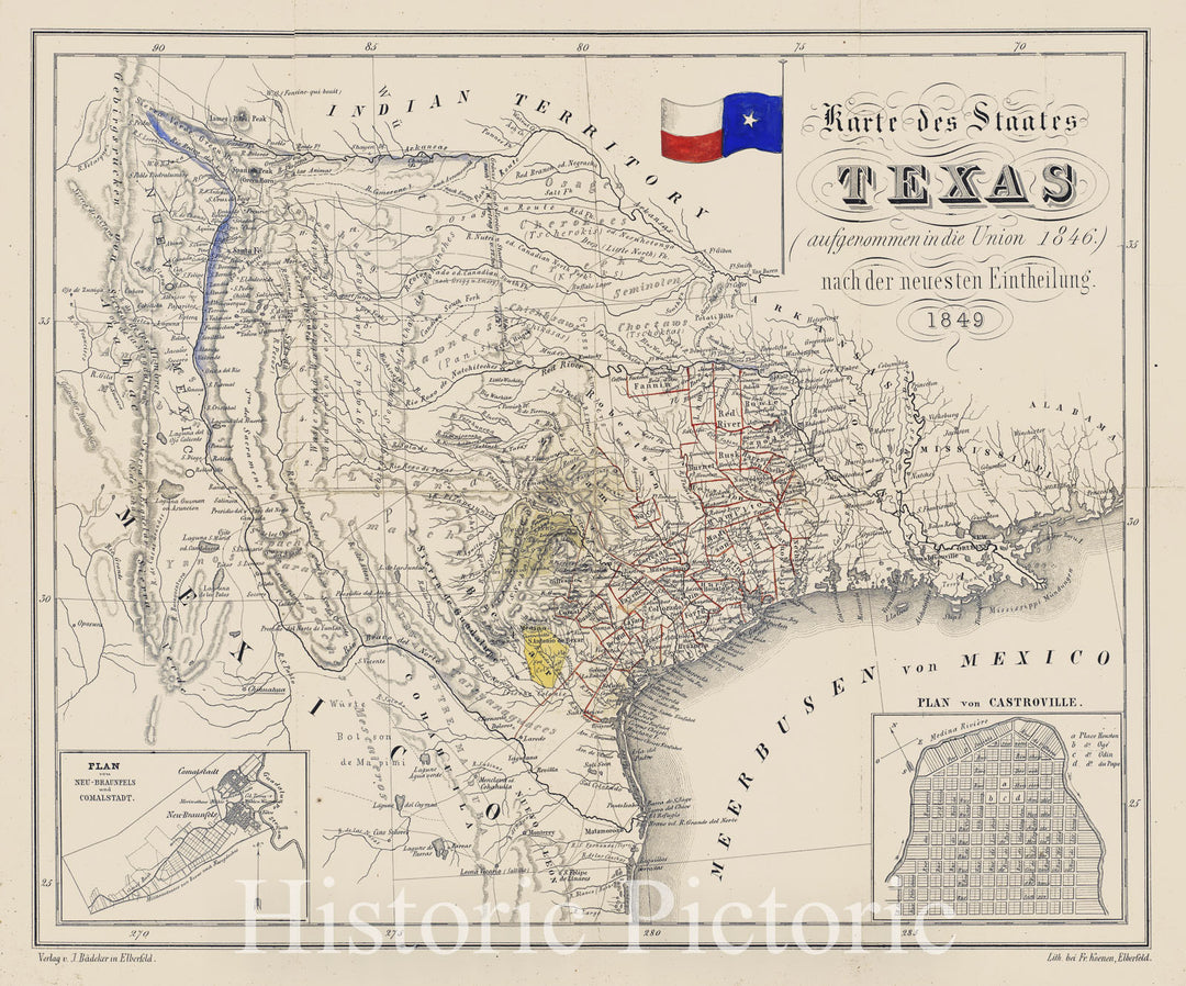 Historic Map - Karte des Staates Texas (aufgenommen in die Union 1846.) nach der neuesten :: State of Texas (admitted to the Union, 1849 - Vintage Wall Art