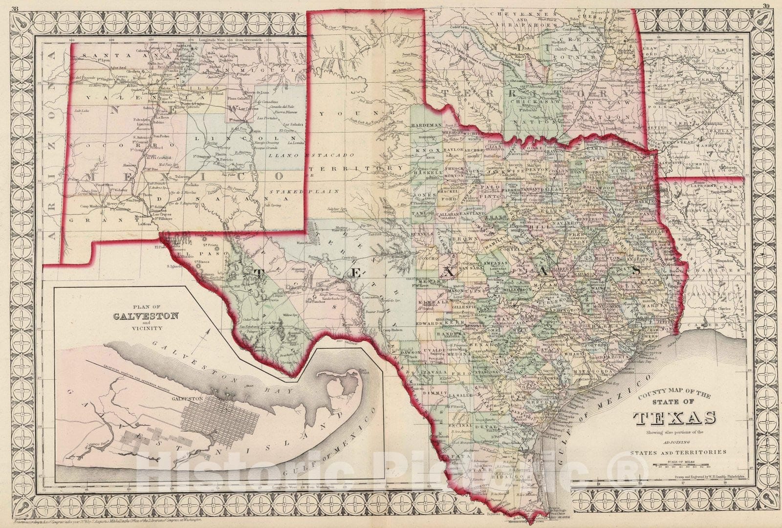 Historic Map : National Atlas - 1874 County Map of the State of Texas. Plan of Galveston and Vicinity. - Vintage Wall Art