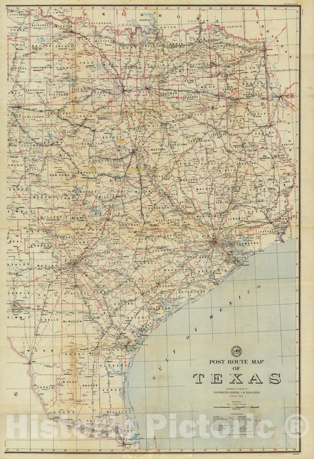Historic Map : Post Route Map of the State of Texas January 1, 1948. (Eastern Division.) - Vintage Wall Art