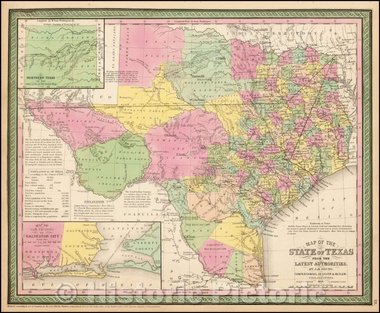 Historic Map - Map of the State of Texas From The Latest Authorities, 1854, Cowperthwait, Desilver & Butler v1