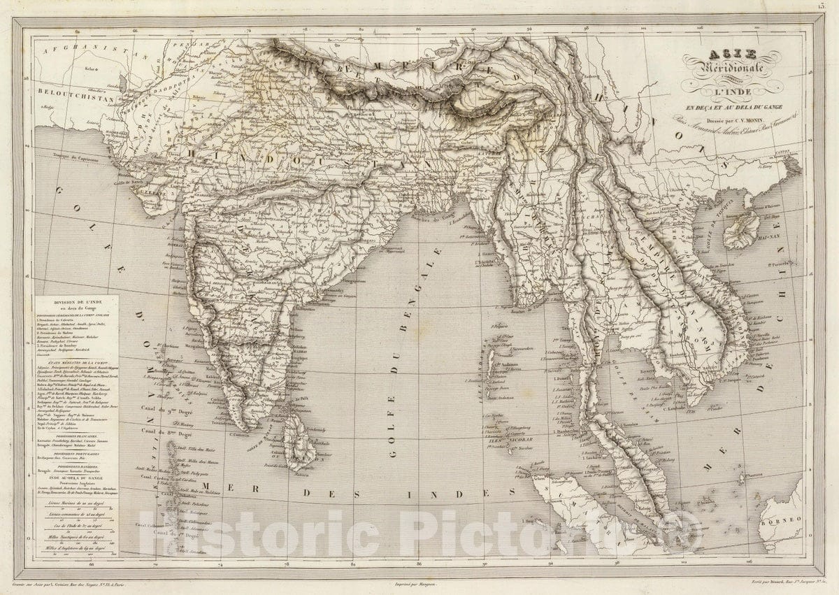 Historic Map : India; Thailand, South Asia 1837 Asie Meridionale. , Vintage Wall Art