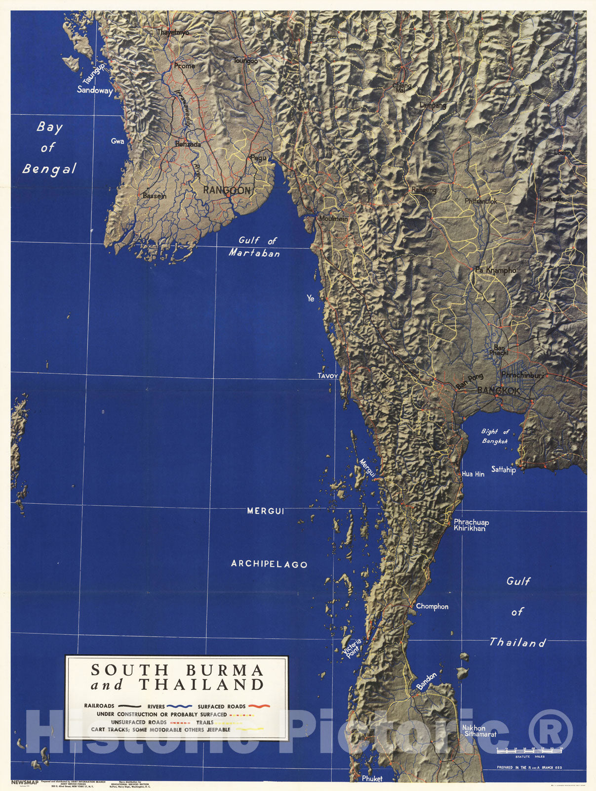 Historic Map - South Burma and Thailand. Newsmap. Monday, December 25, 1944 Vol. III. No 36F, 1944 - Vintage Wall Art