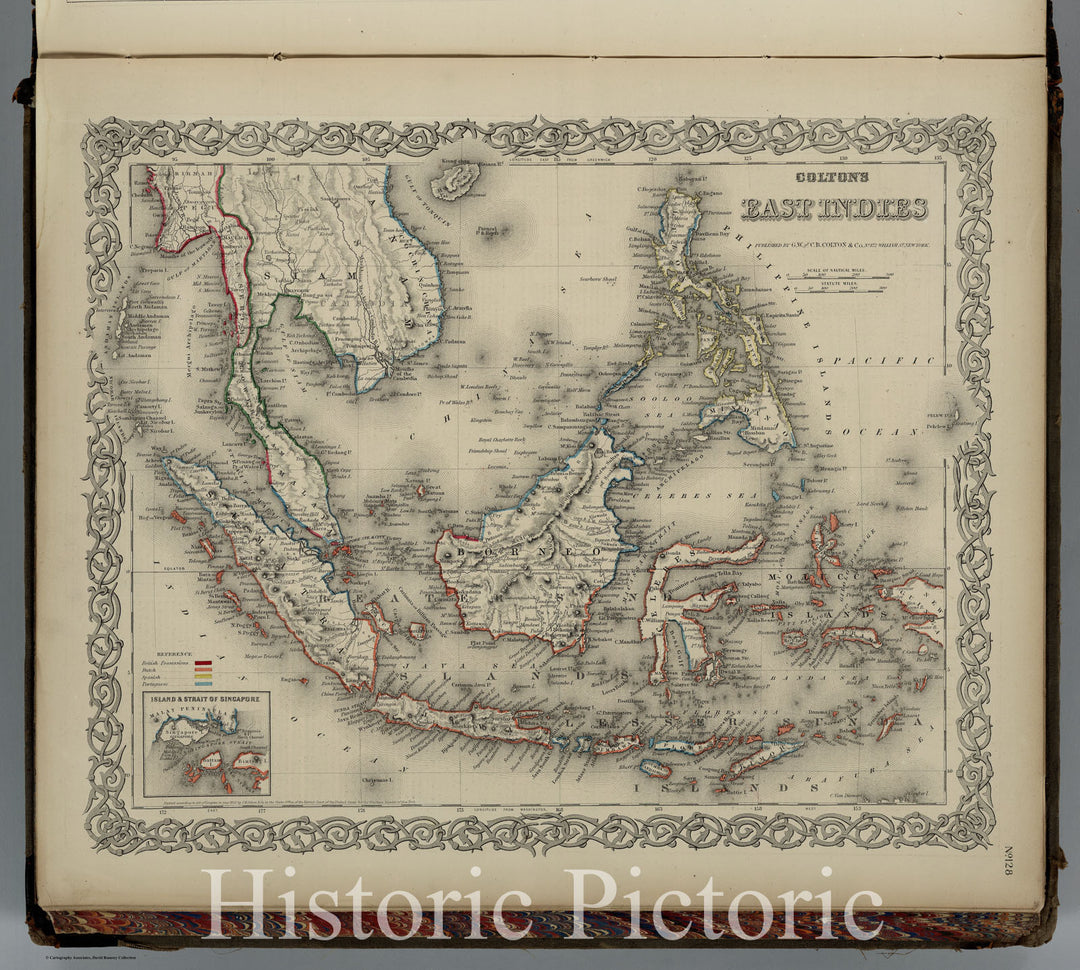 Historic Map : Colton Map of The East Indies (Singapore, Thailand, Borneo, Malaysia) , 1855, Vintage Wall Art