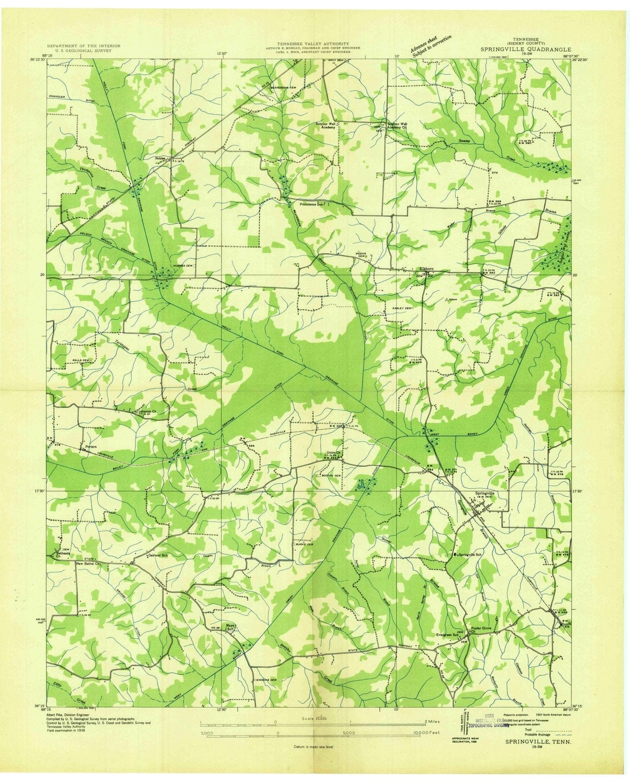 1936 Springfield, TN - Tennessee - USGS Topographic Map
