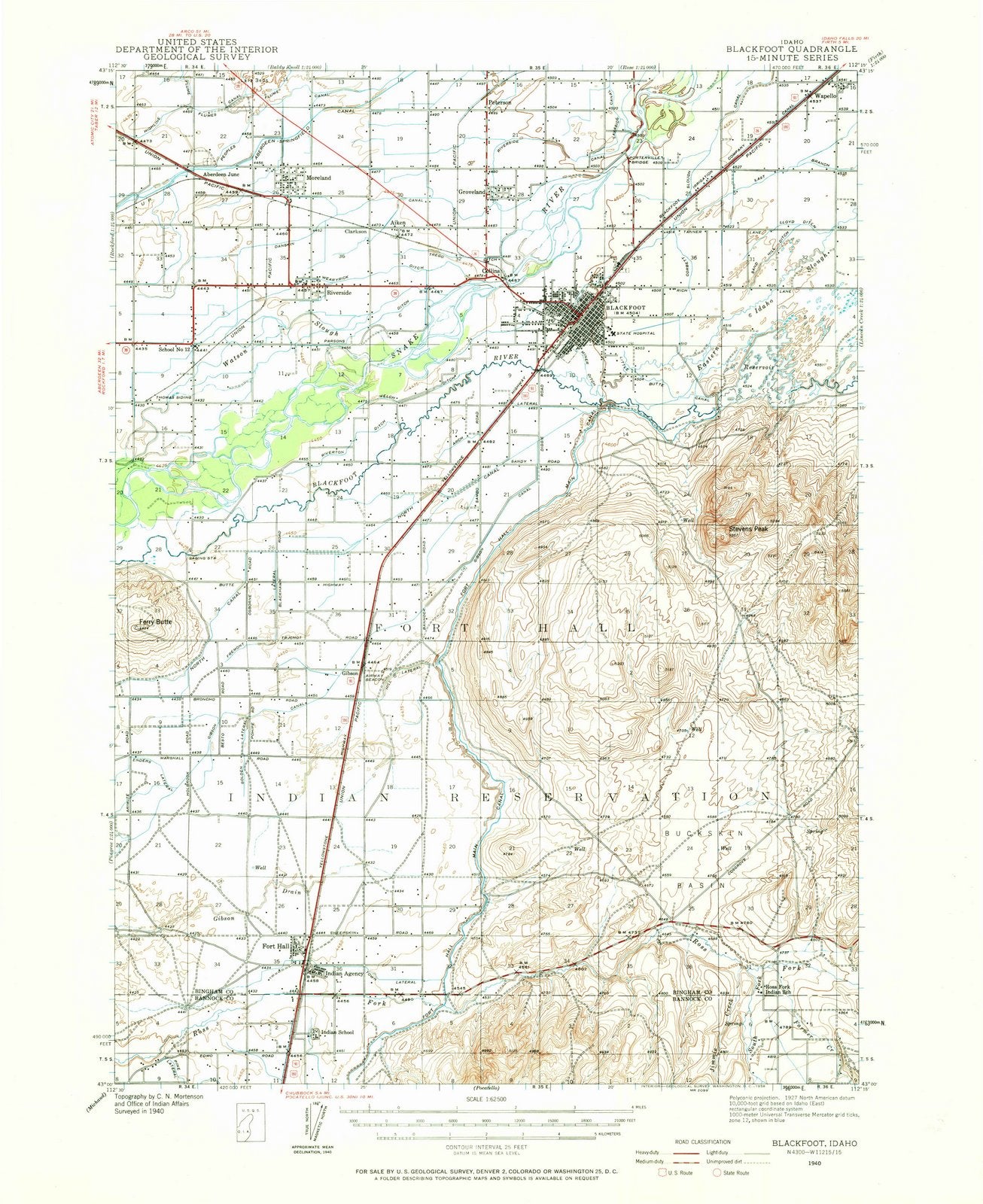 1940 Blackfoot, ID - Idaho - USGS Topographic Map