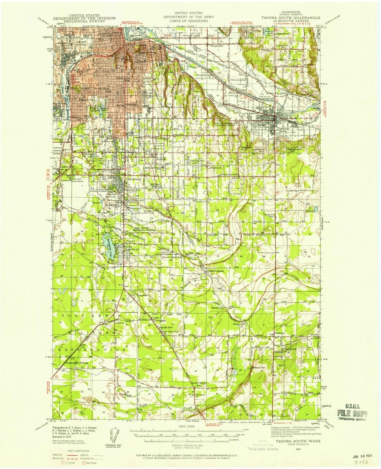 1941 Tacoma South, WA - Washington - USGS Topographic Map