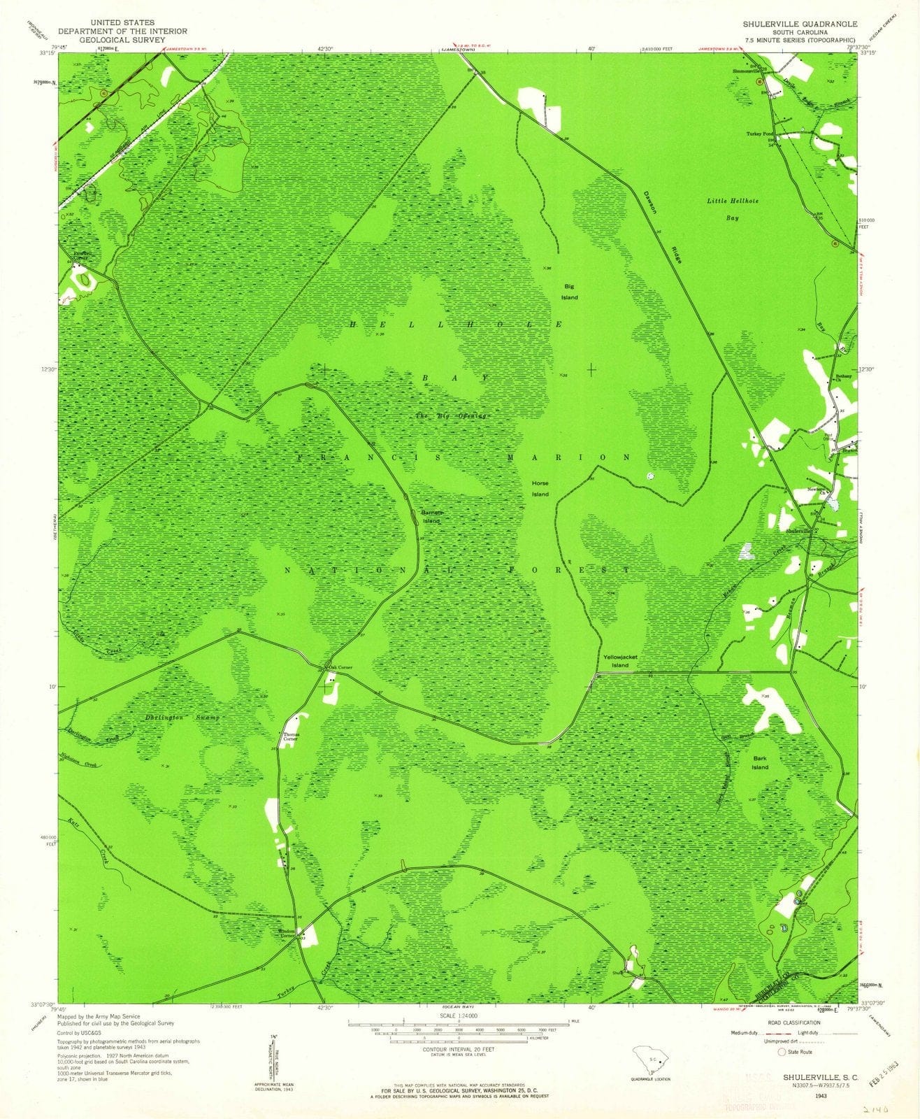 1943 Shulerville, SC - South Carolina - USGS Topographic Map