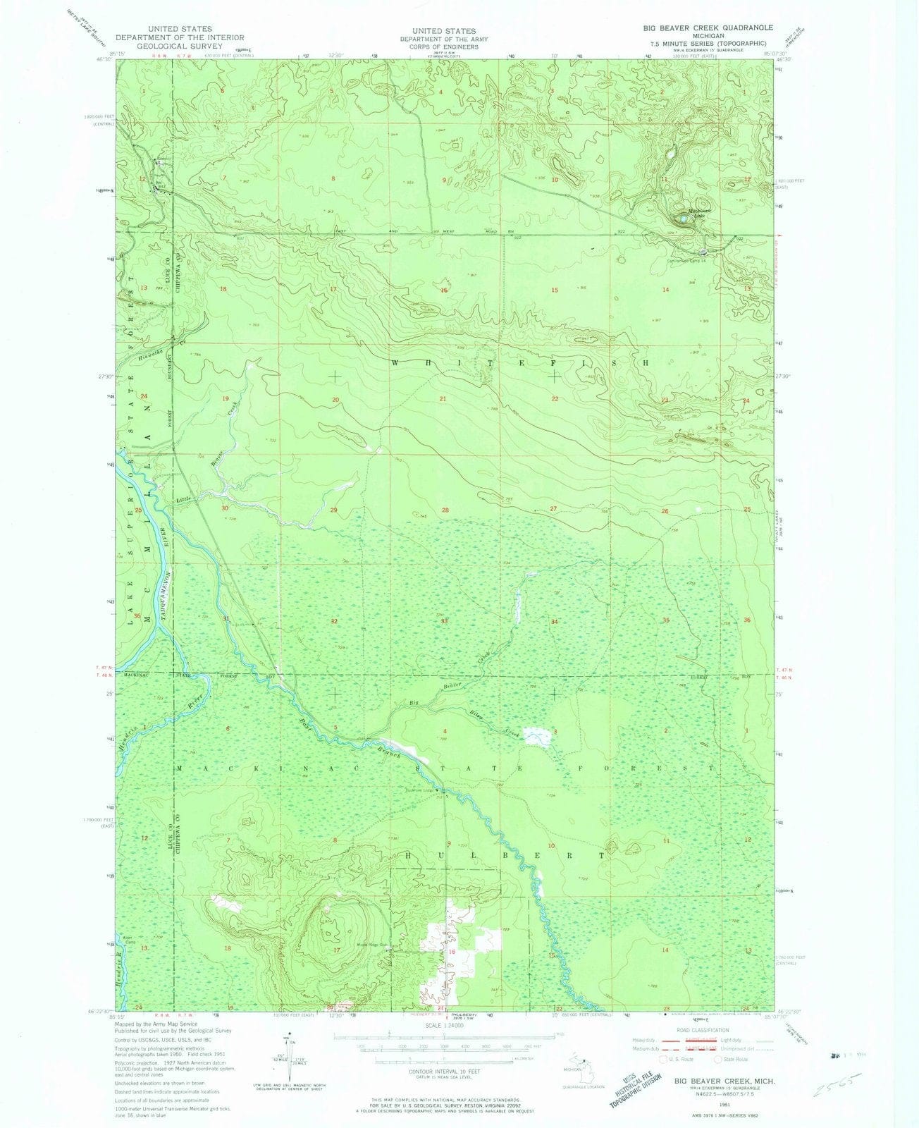 1951 Big Beaver Creek, MI - Michigan - USGS Topographic Map