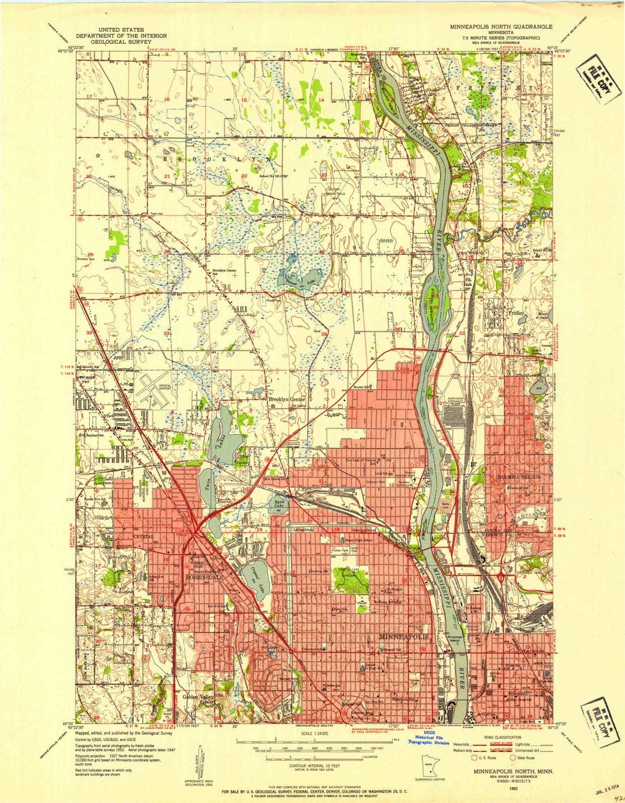1952 Minneapolis North, MN - Minnesota - USGS Topographic Map