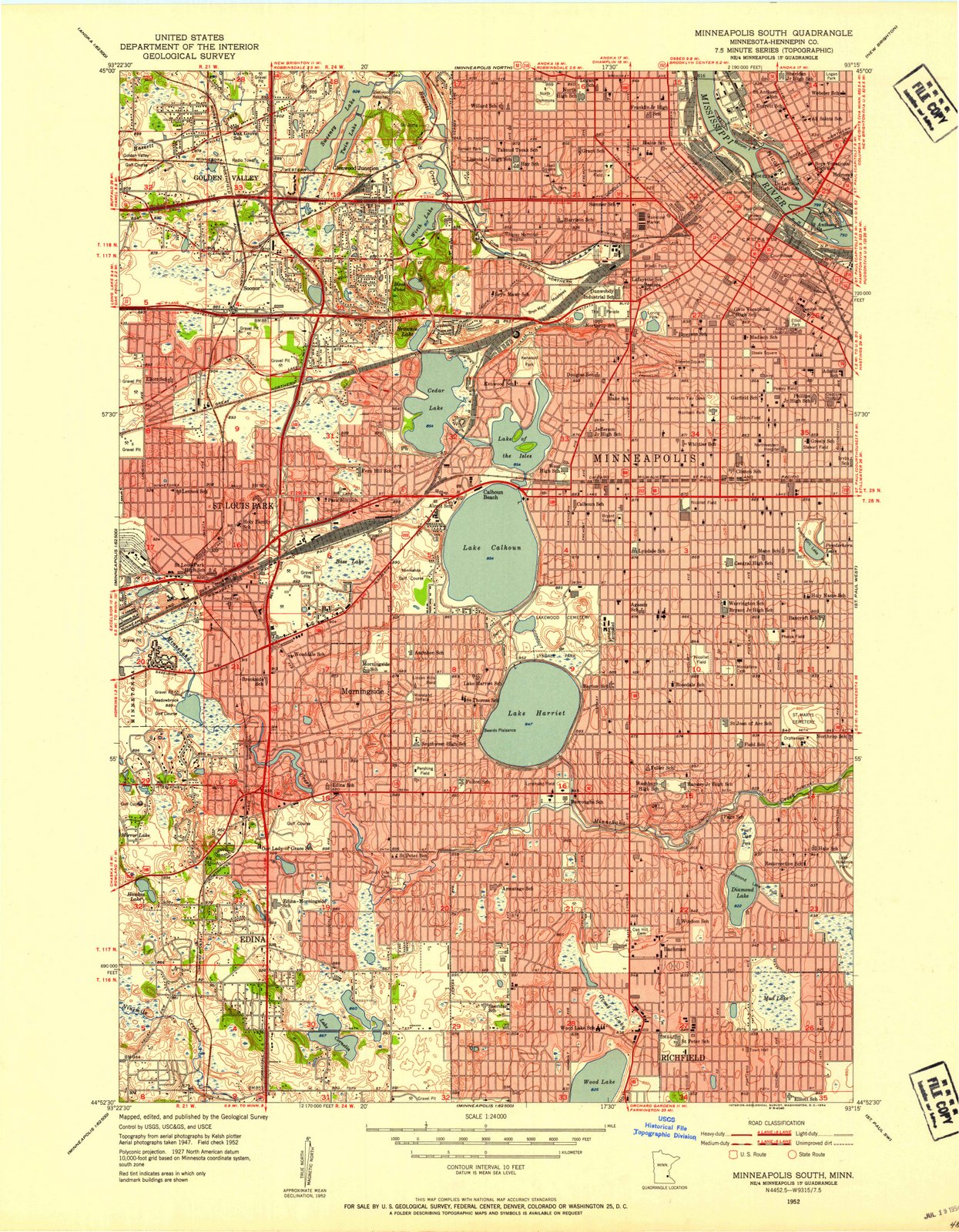 1952 Minneapolis South, MN - Minnesota - USGS Topographic Map