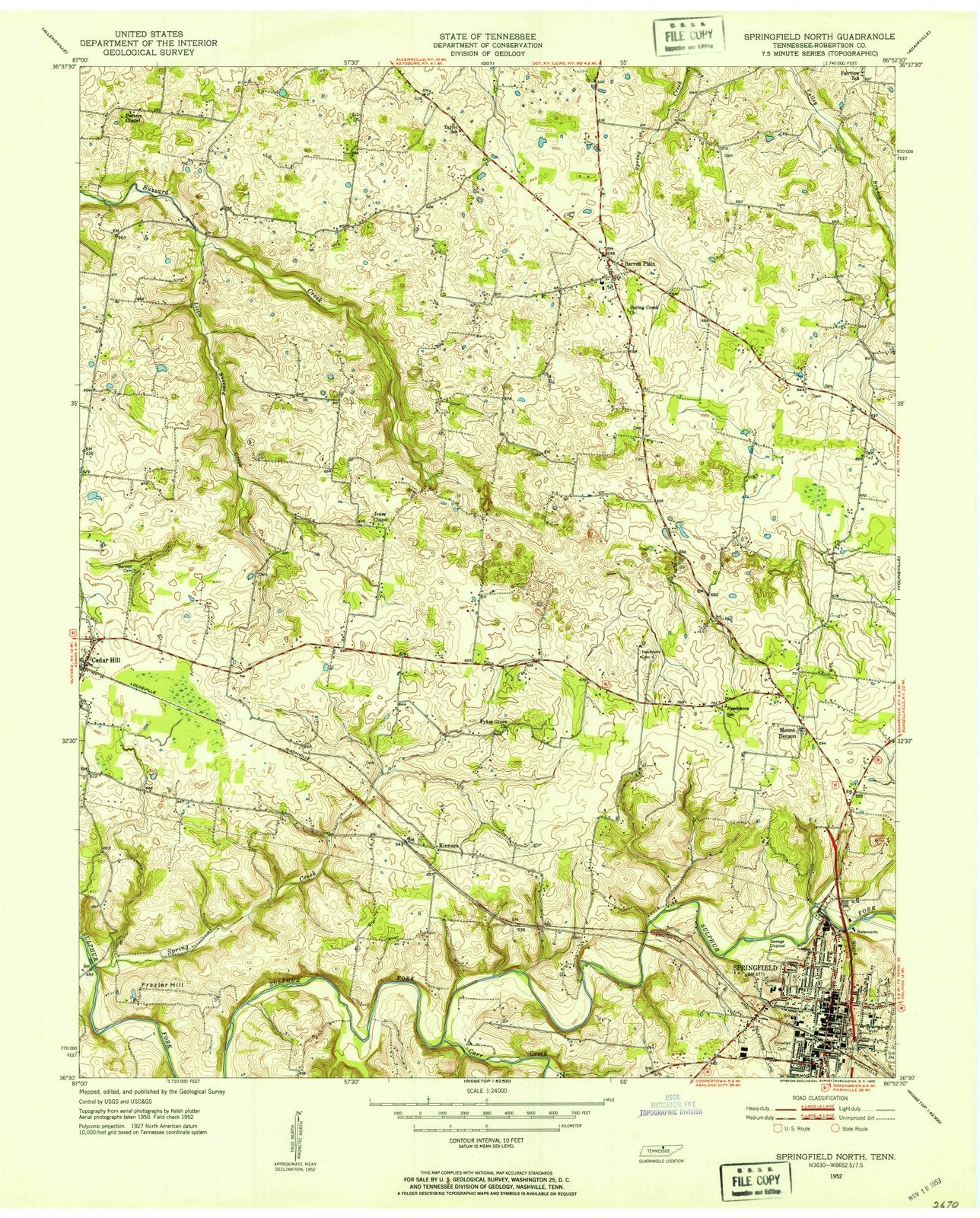 1952 Springfield, TN - Tennessee - USGS Topographic Map