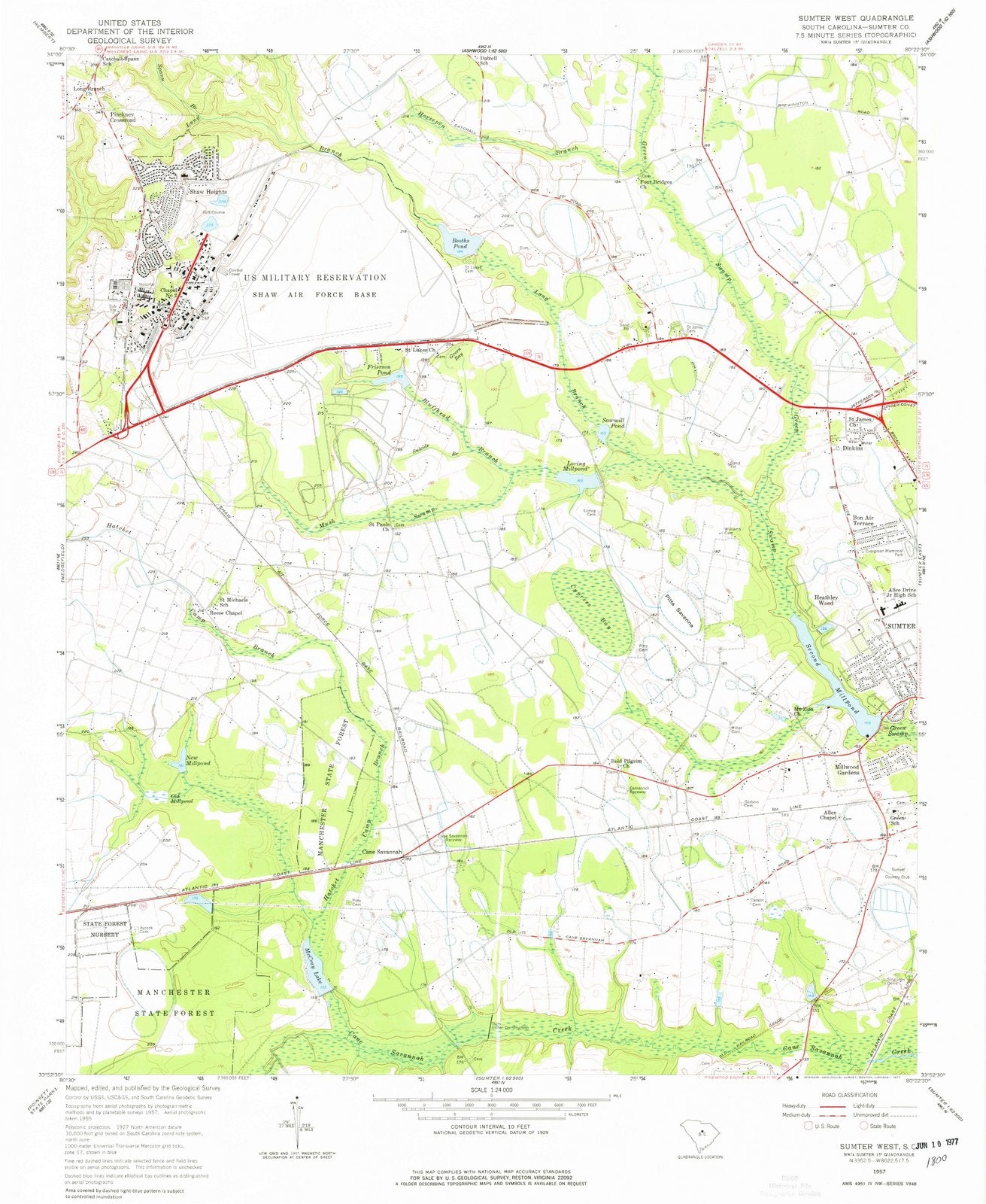 1957 Sumter West, SC - South Carolina - USGS Topographic Map