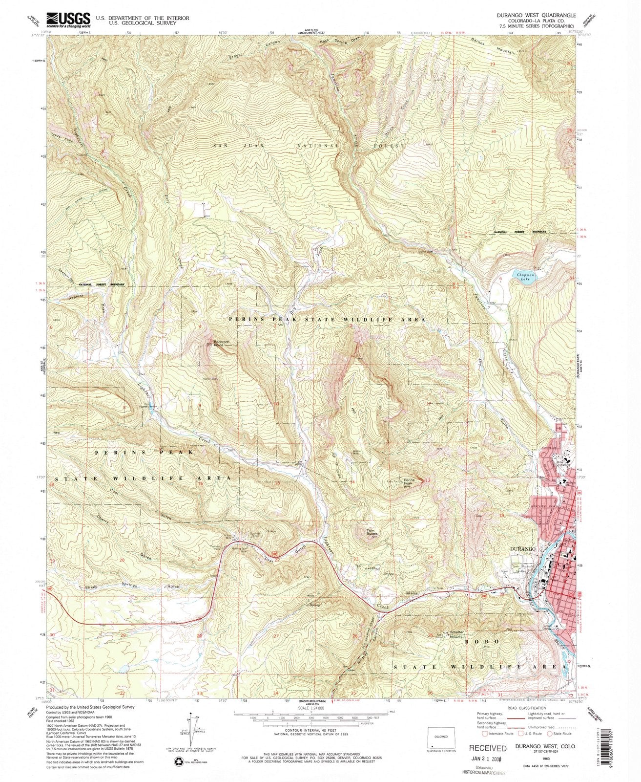 1963 Durango West, CO - Colorado - USGS Topographic Map