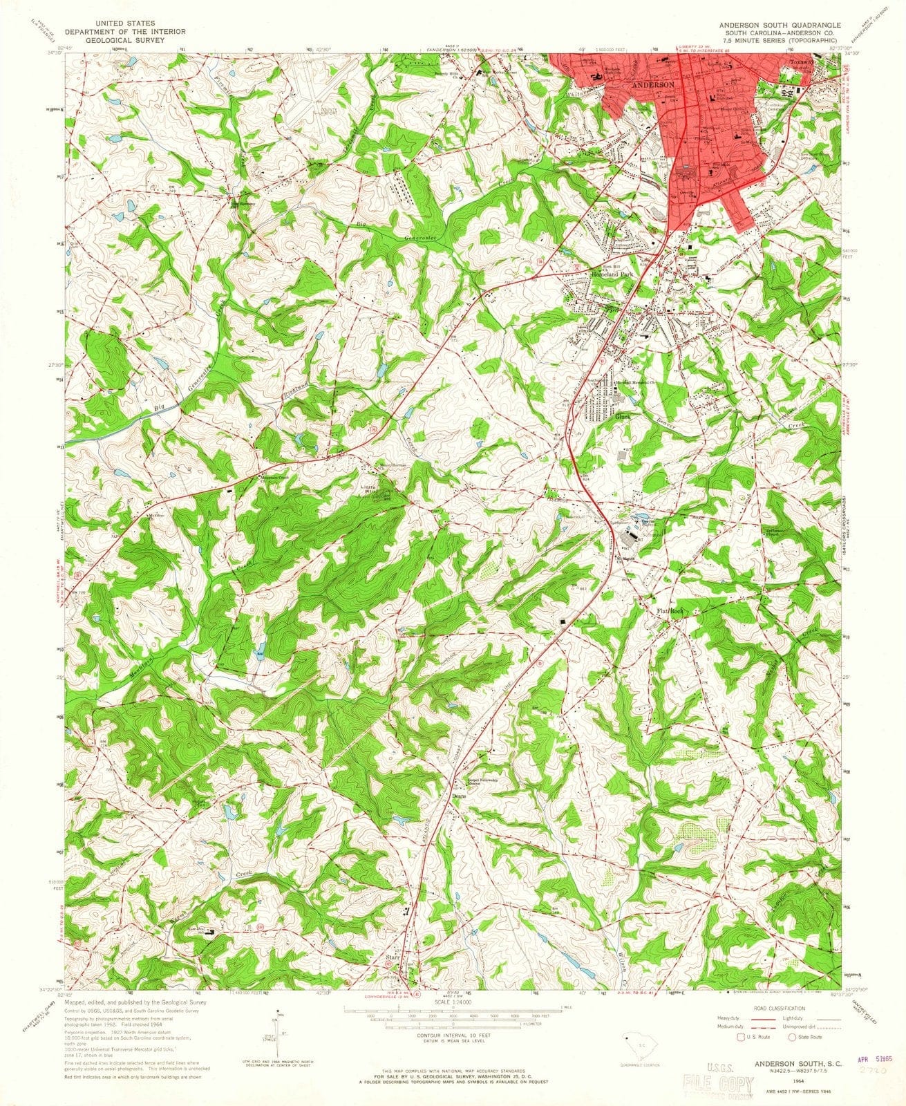 1964 Anderson South, SC - South Carolina - USGS Topographic Map