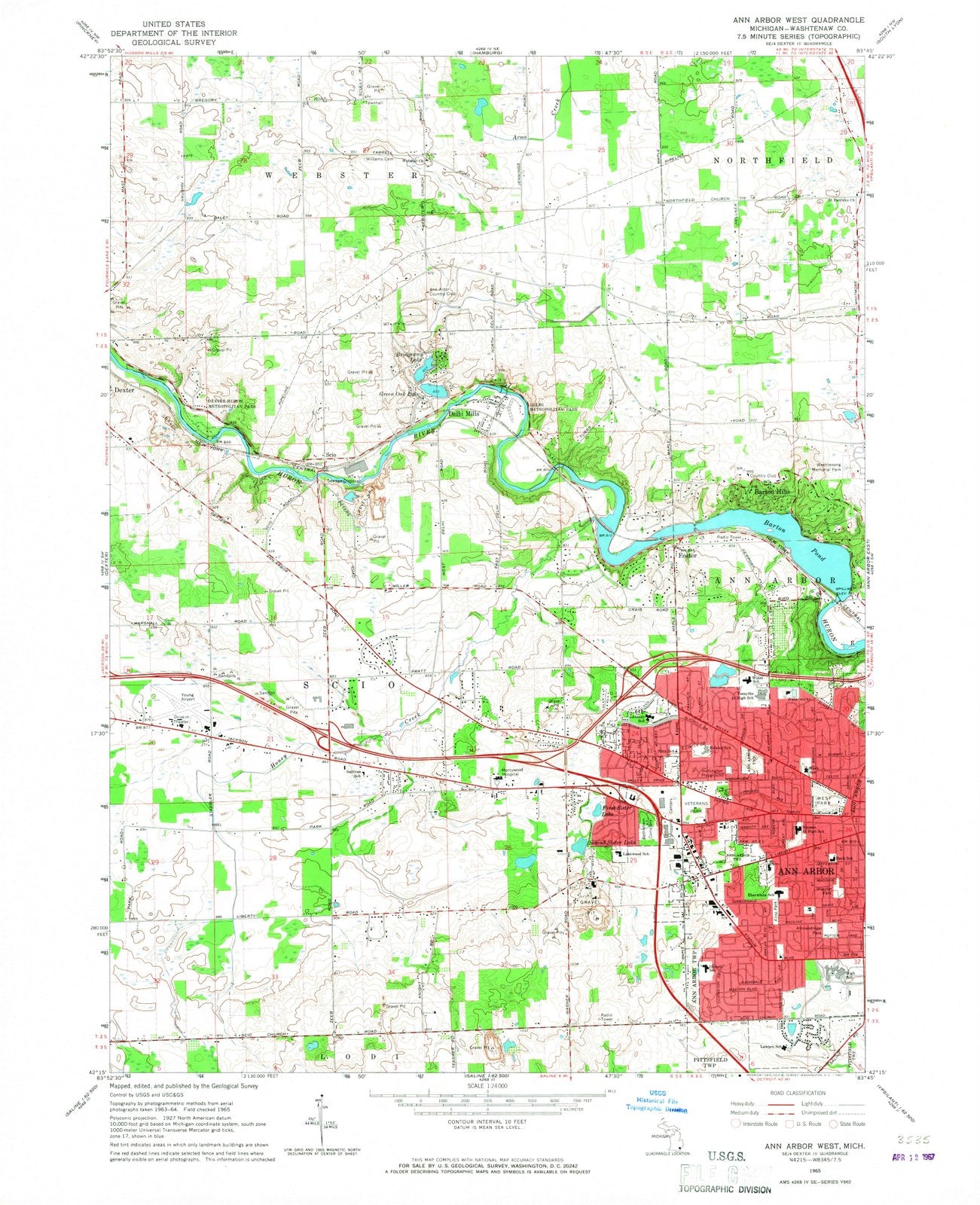 1965 Ann Arbor West, MI - Michigan - USGS Topographic Map