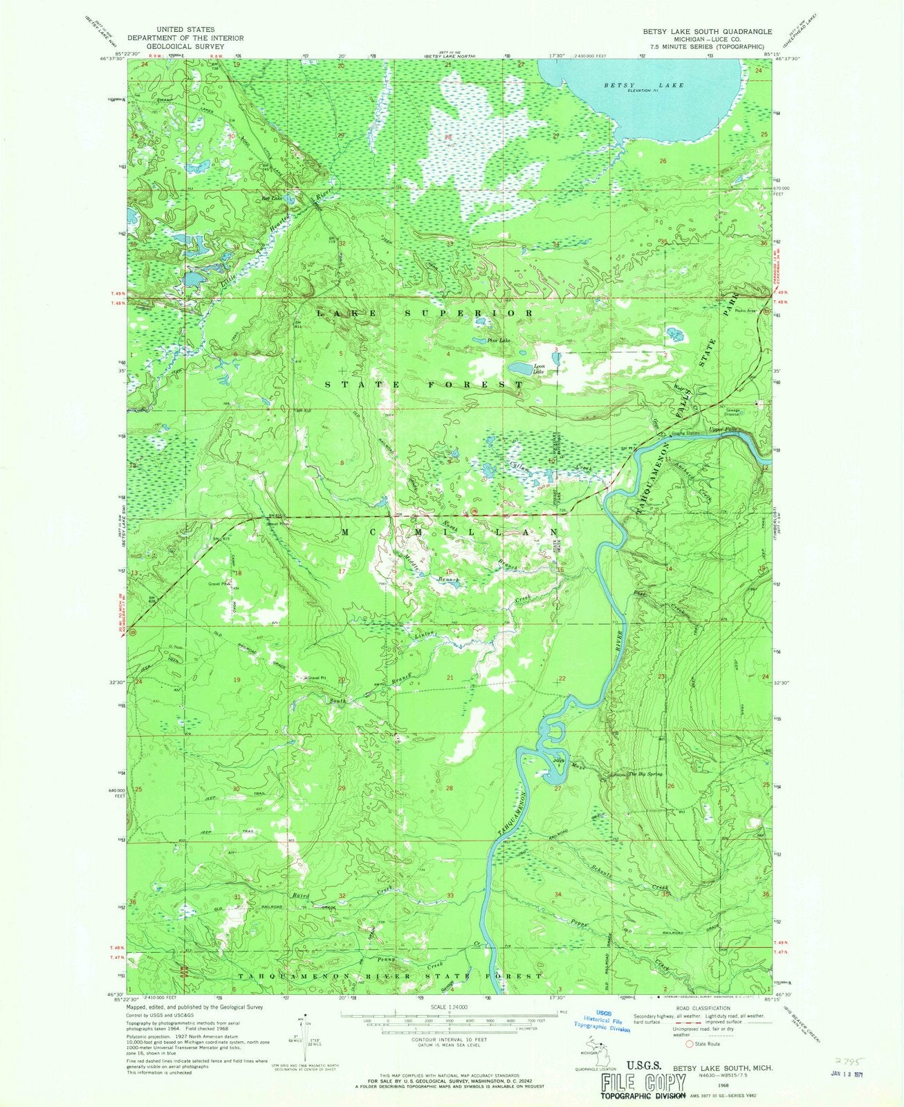 1968 Betsy Lake South, MI - Michigan - USGS Topographic Map
