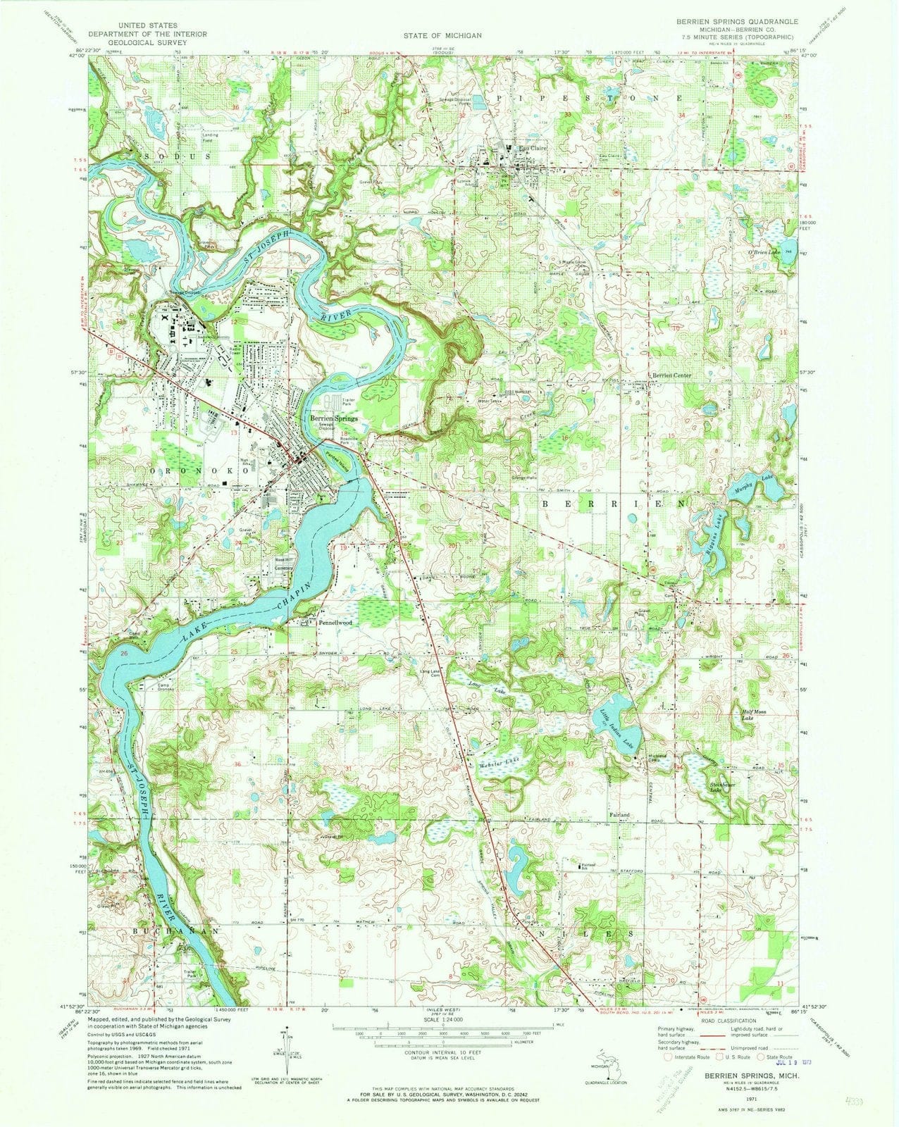 1971 Berrien Springs, MI - Michigan - USGS Topographic Map