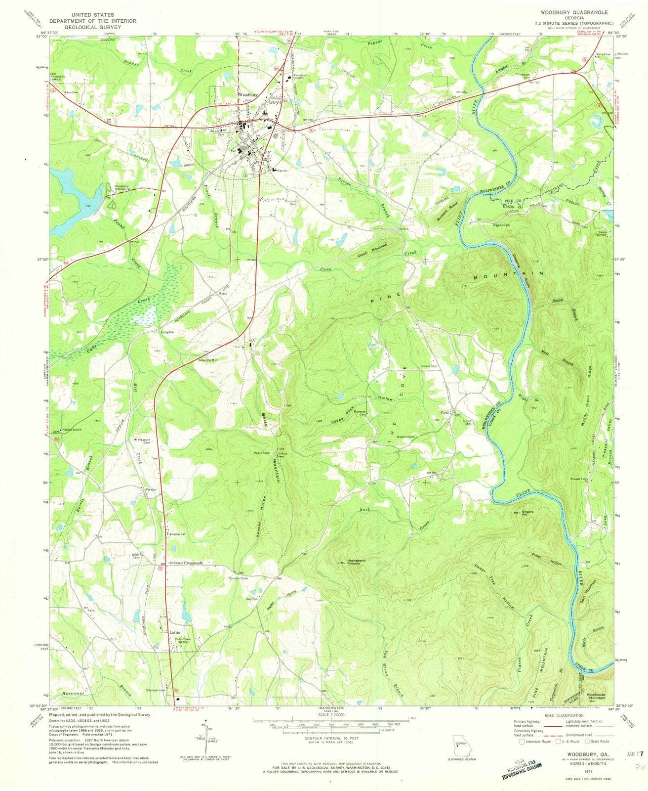 1971 Woodbury, GA - Georgia - USGS Topographic Map