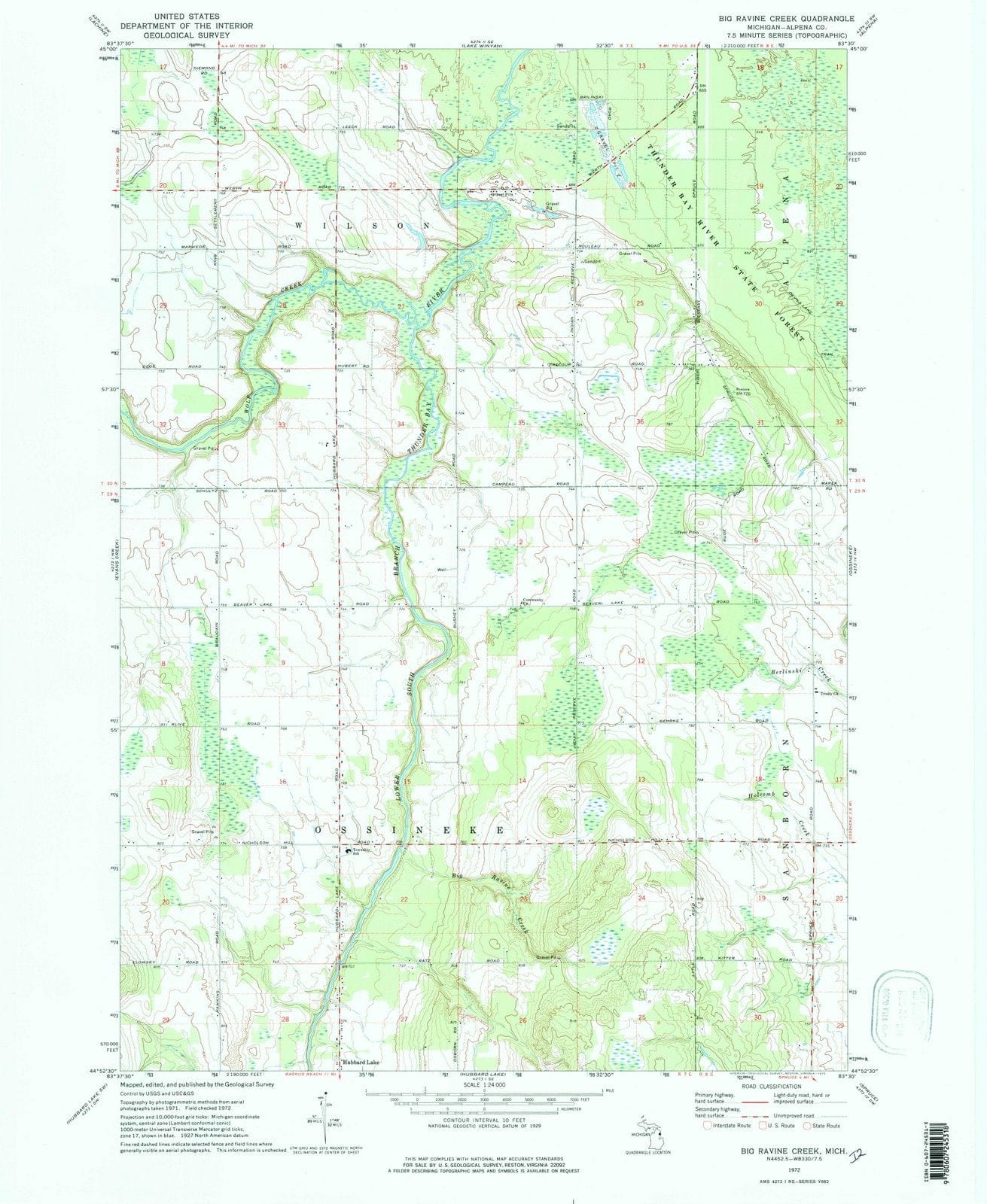 • 1972 Big Ravine Creek, MI - Michigan - USGS Topographic Map
