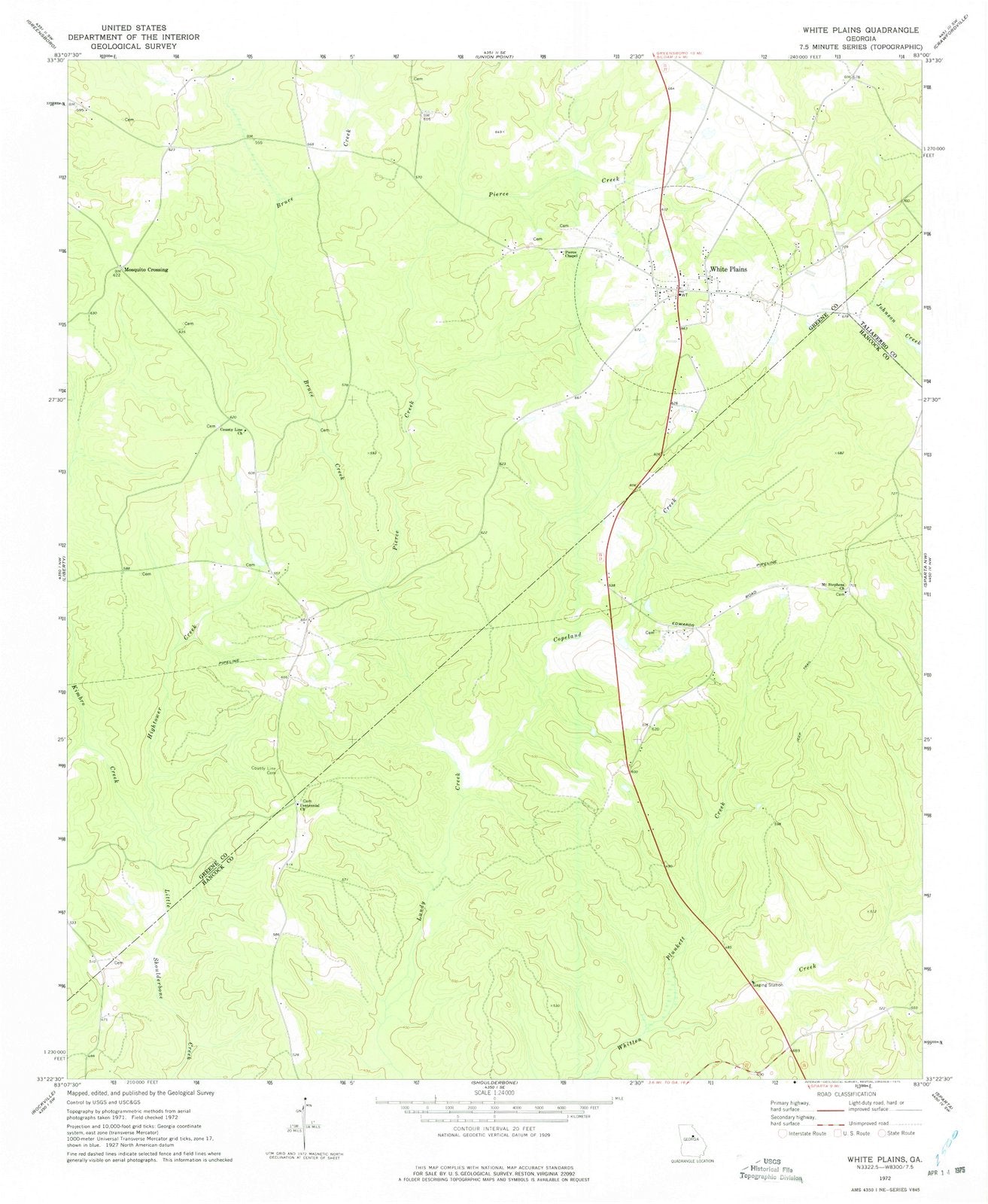 1972 White Plains, GA - Georgia - USGS Topographic Map