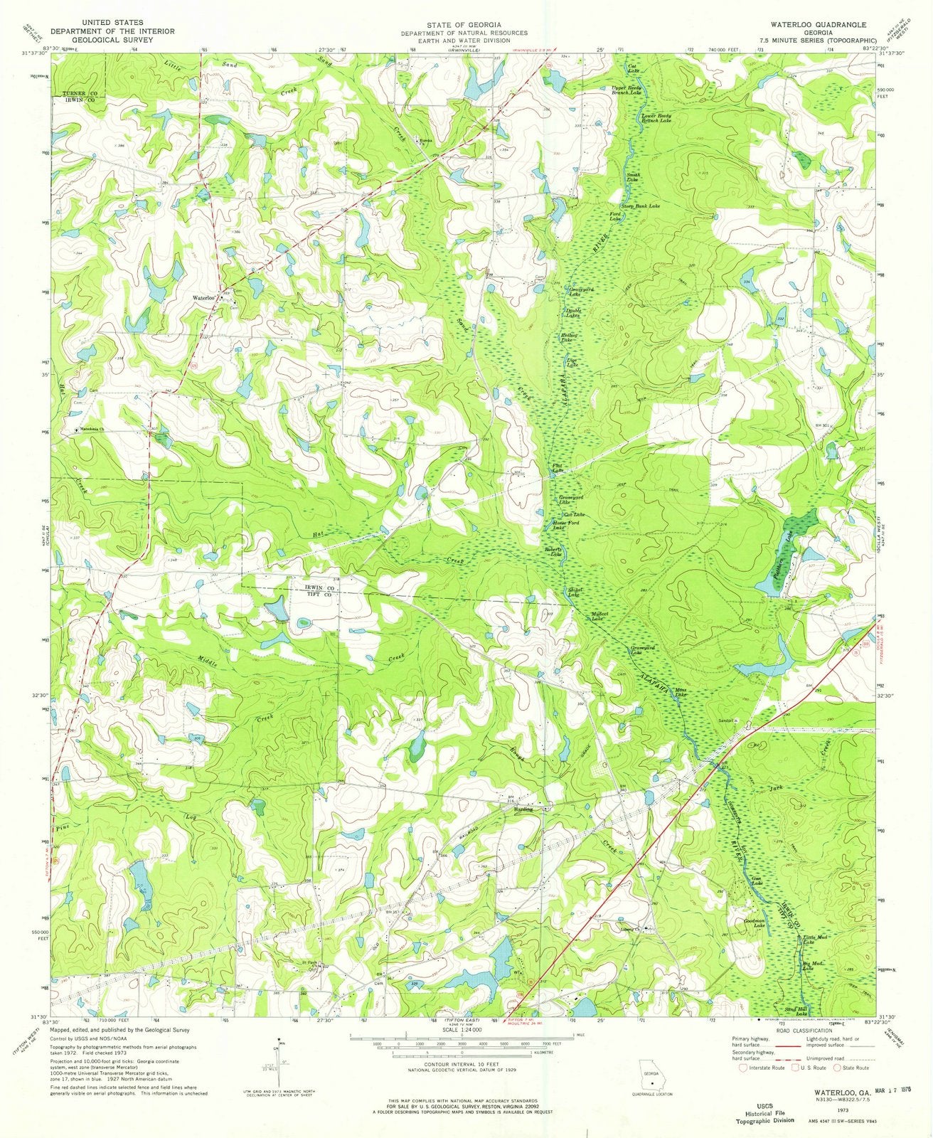 1973 Waterloo, GA - Georgia - USGS Topographic Map