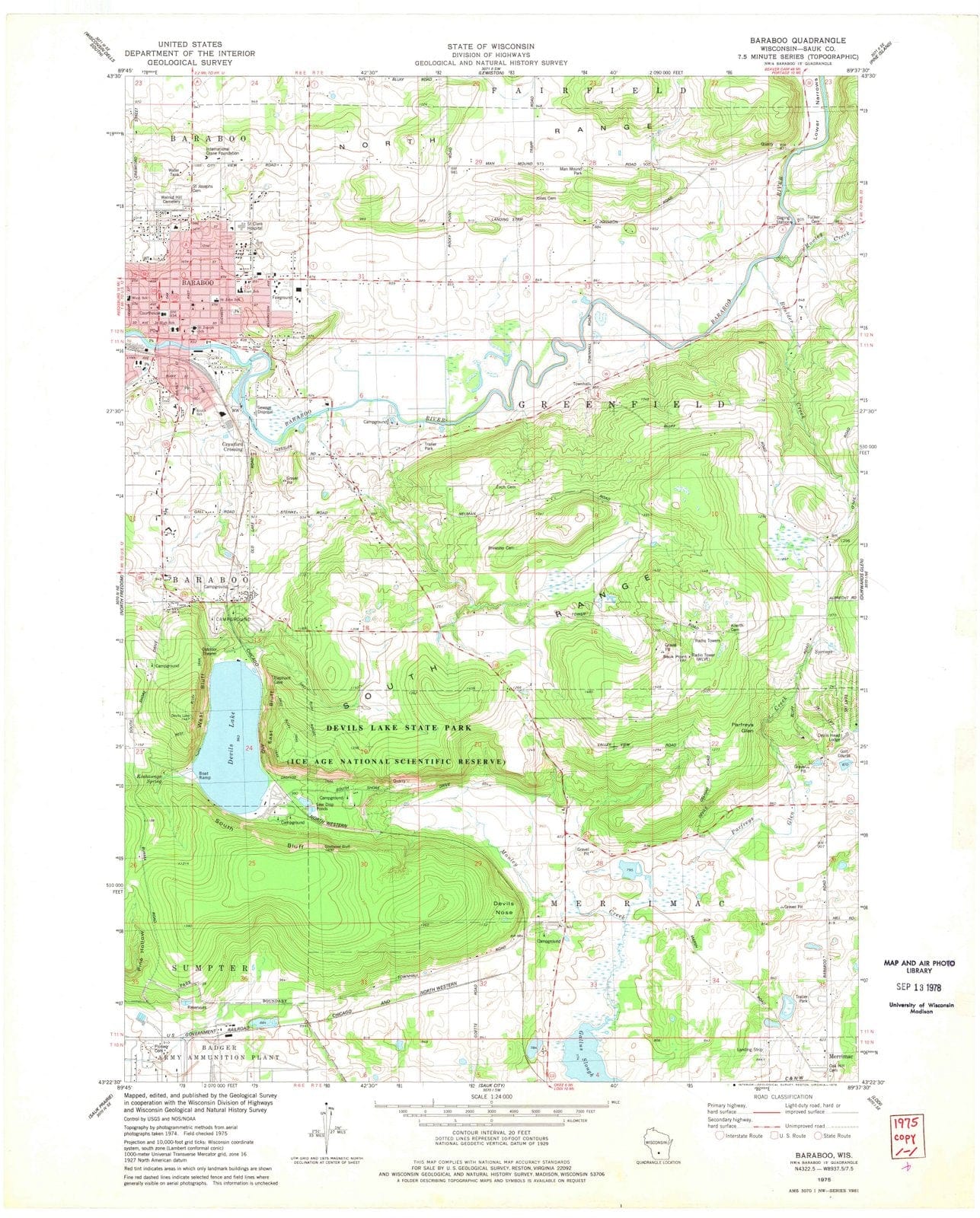 1975 Baraboo, WI - Wisconsin - USGS Topographic Map