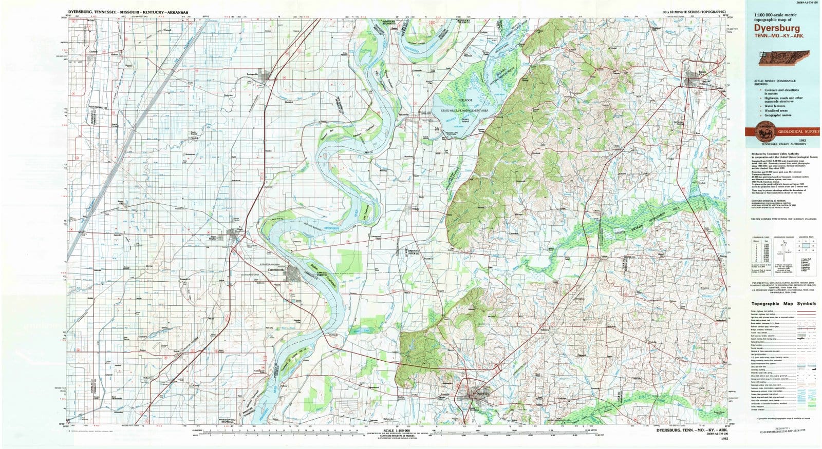 1983 Dyersburg, TN - Tennessee - USGS Topographic Map