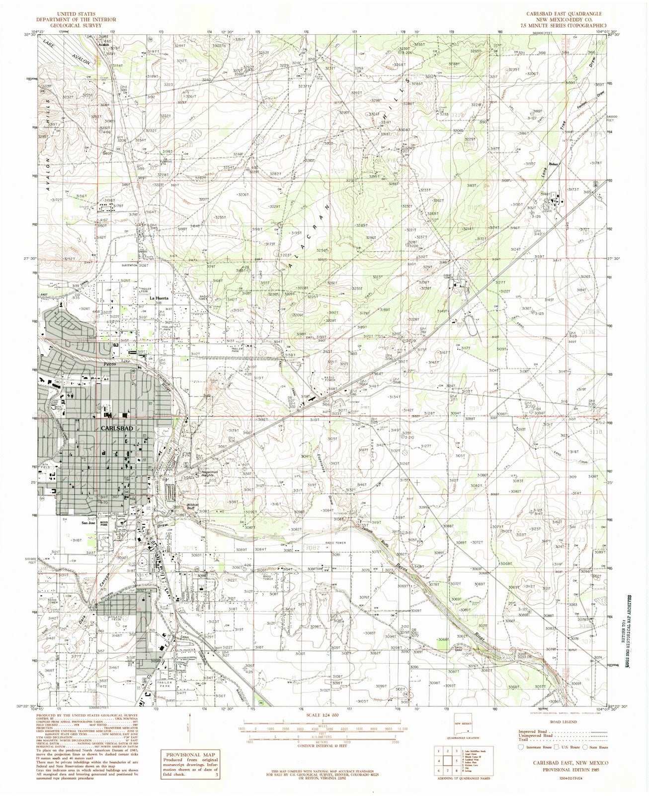 • 1985 Carlsbad East, NM - New Mexico - USGS Topographic Map