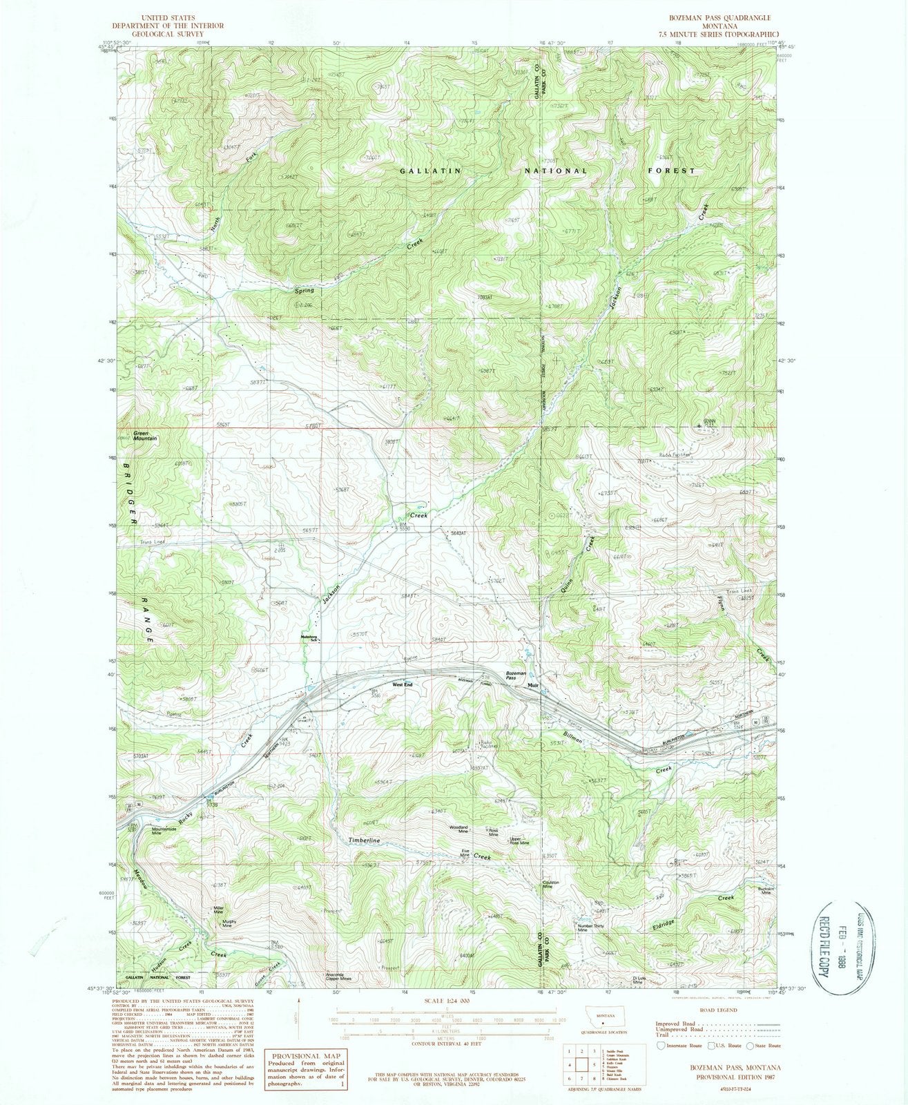 1987 Bozeman Pass, MT - Montana - USGS Topographic Map