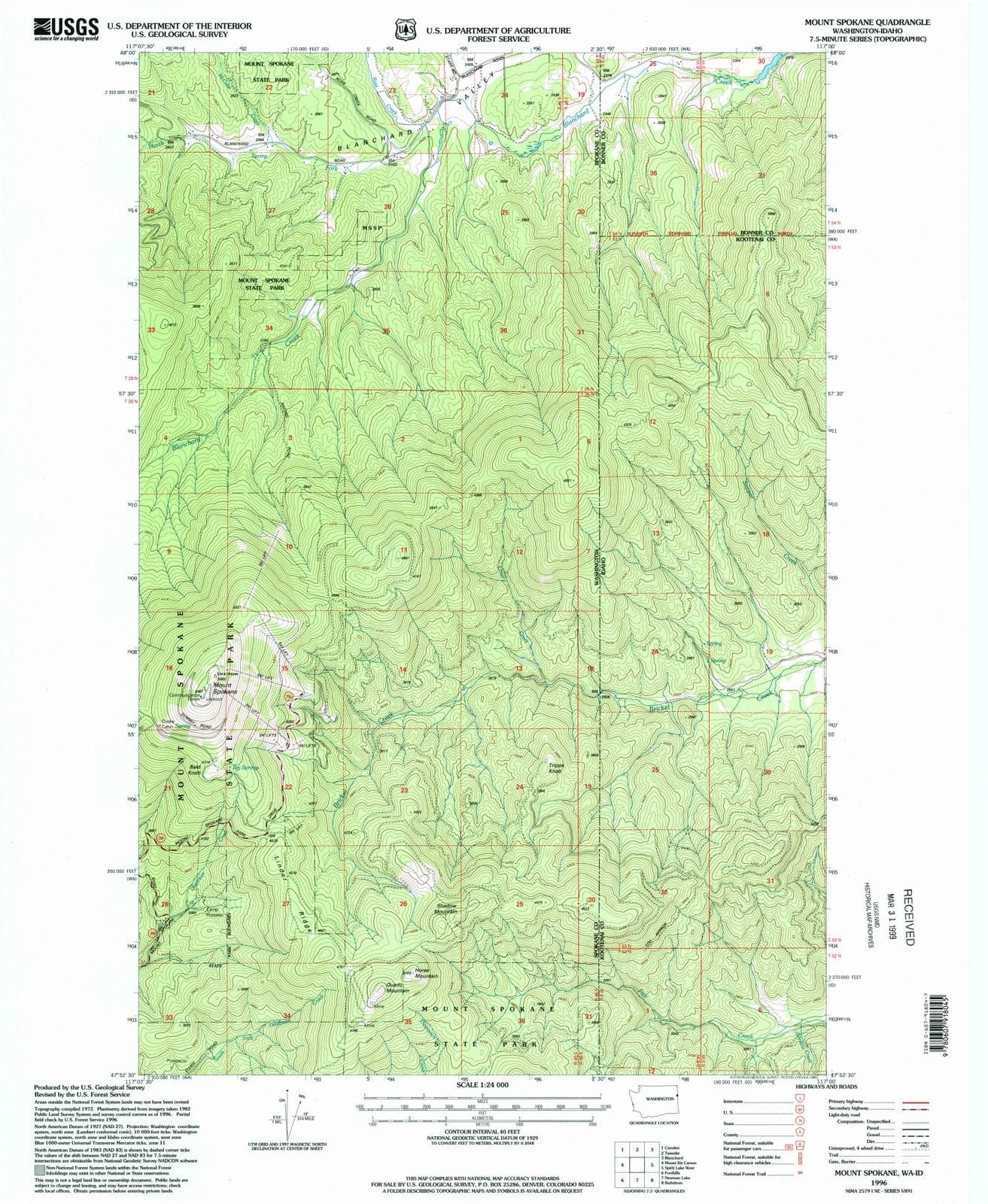 1996 Mount Spokane, WA - Washington - USGS Topographic Map