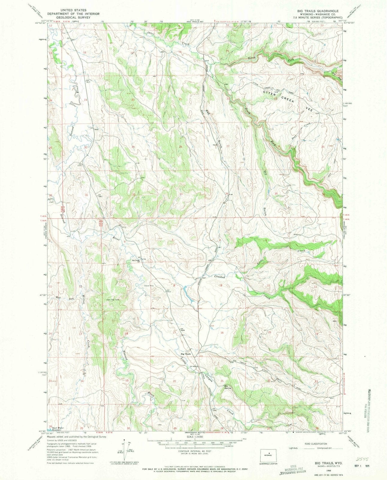 1966 Big Trails, WY - Wyoming - USGS Topographic Map v2
