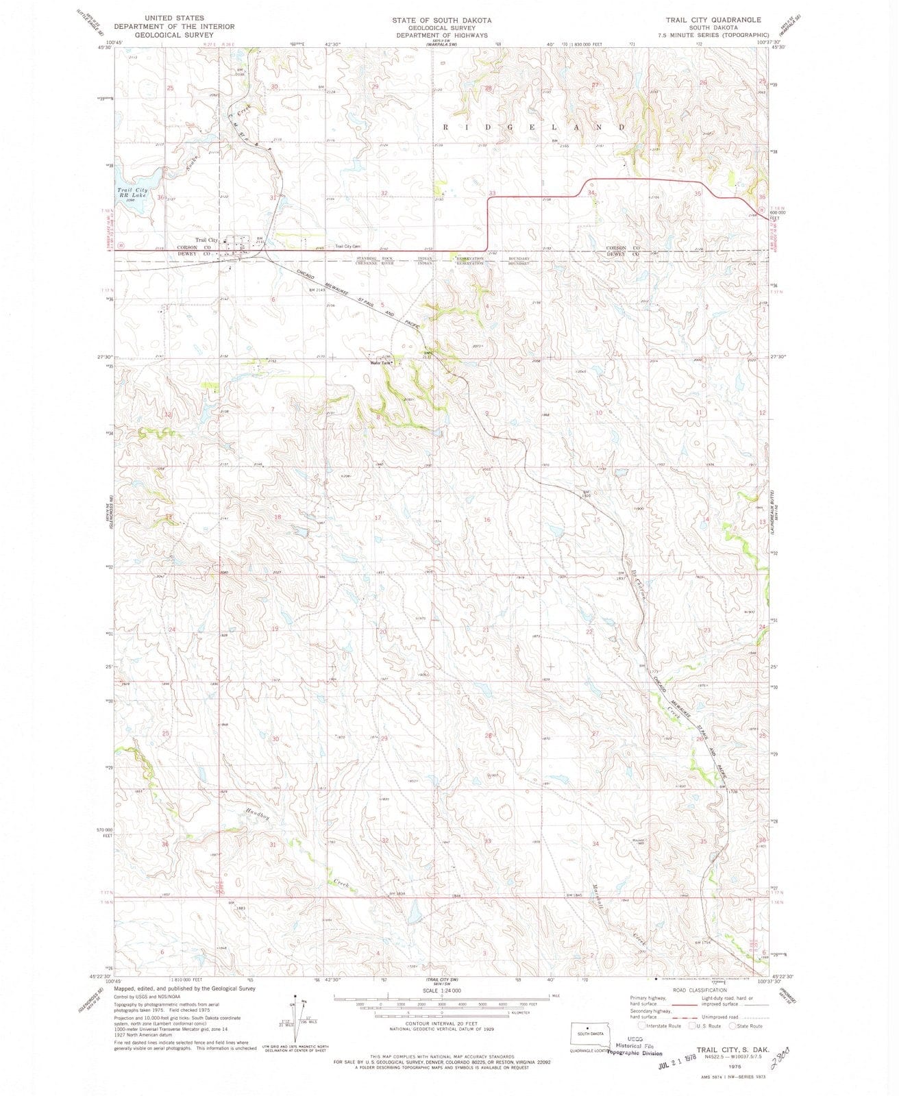 • 1975 Trail City, SD - South Dakota - USGS Topographic Map