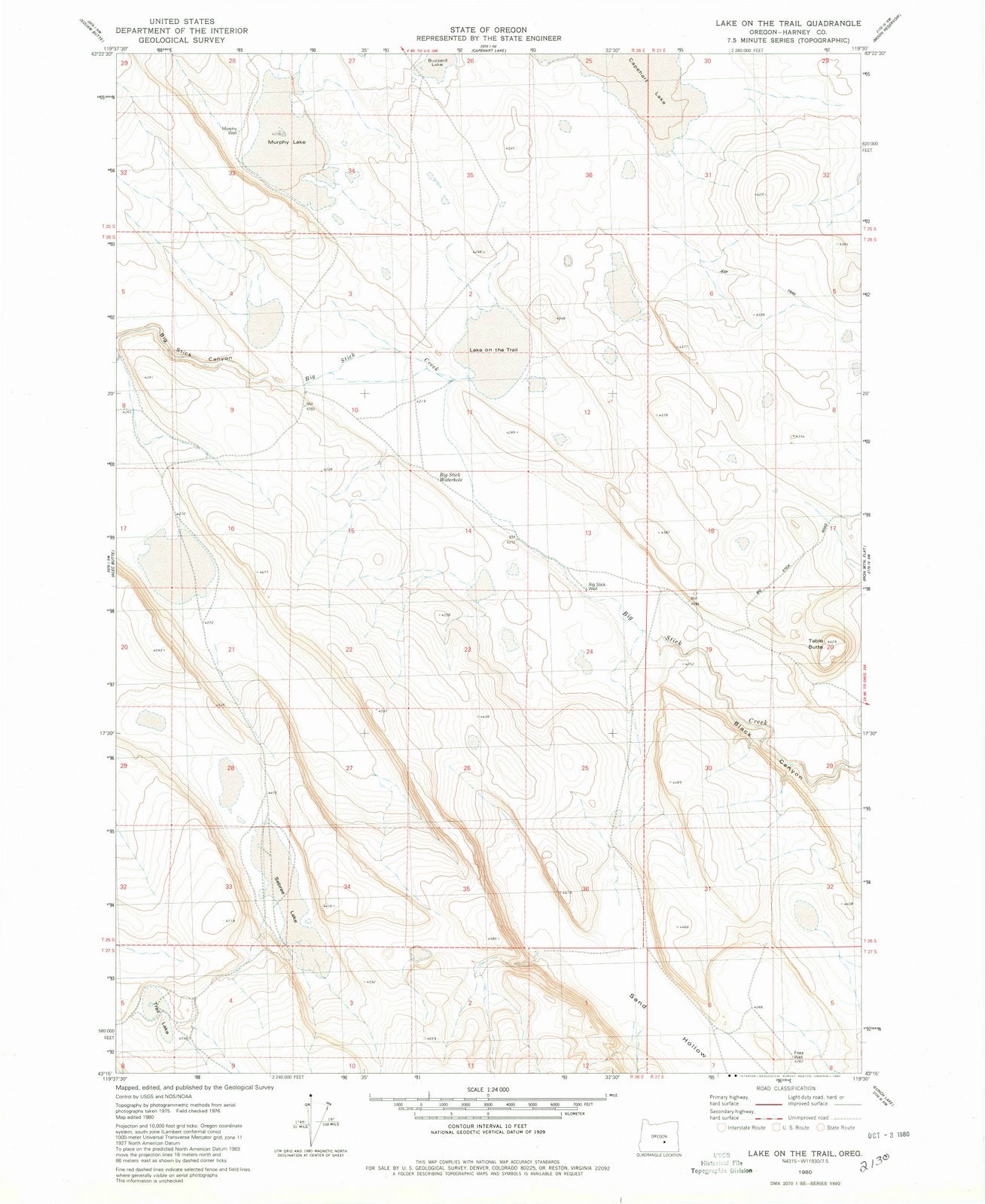 • 1980 Lake on The Trail, OR - Oregon - USGS Topographic Map